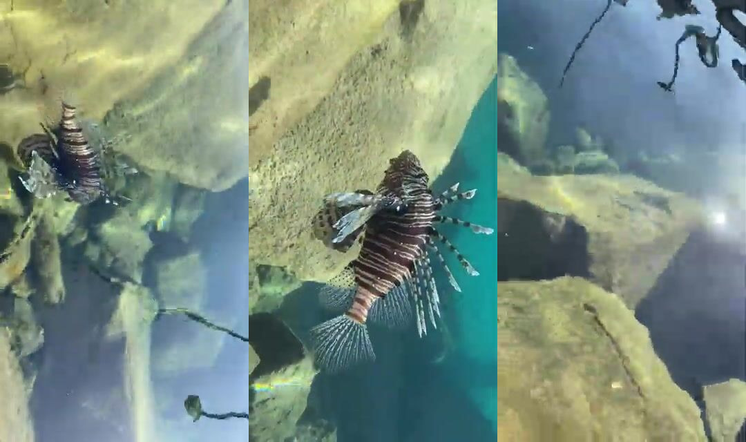 Красивый огненный скорпеноподобный хайрофиш в Эйлате под водой Красного моря