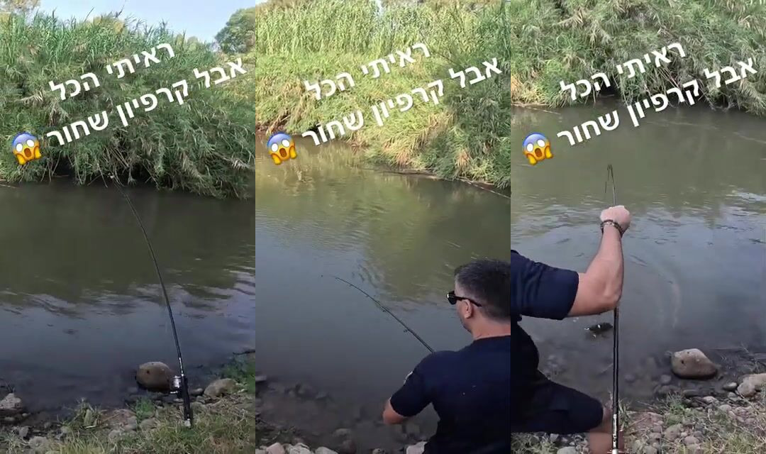 Необычная рыбалка огромный черный карп на крючке и эмоции израильского рыбака на видео