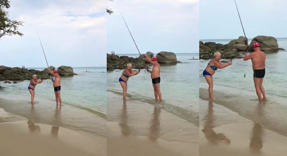 Fishing at Karon Beach Phuket береговая морская рыбалка на Пхукете у длинного песчаного пляжа