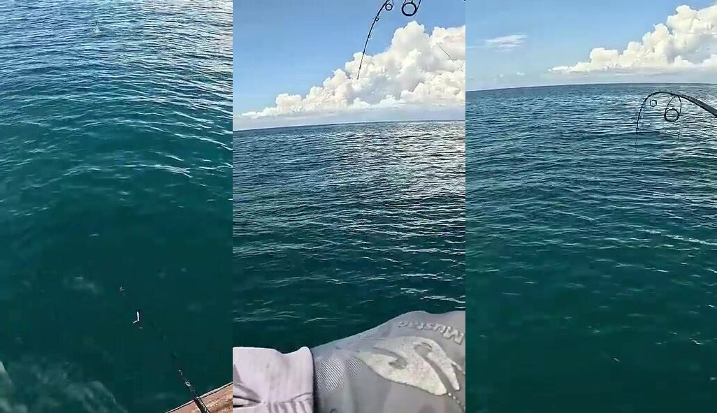 Эпический удар по топвотеру хищник вылетает за приманкой прямо у поверхности воды