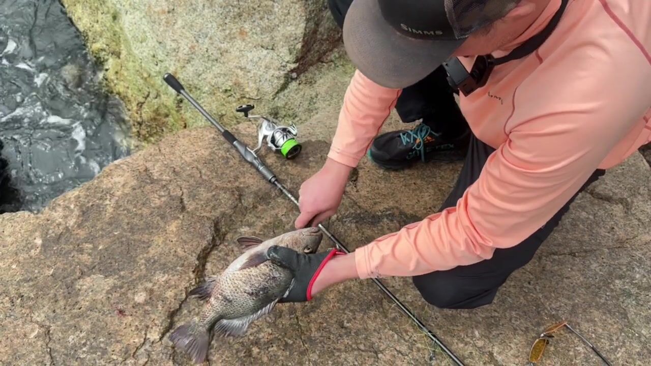 Ночь. Камни и течение, плавающий воблер спасает от зацепов. Утро. На отлив рыбаков больше, клёв оживает. Береговые пирсы между пляжами работают, по хэштегам нашёл точки. Мангровый джек сел на проводке, около полкило, зубы как у щуки — струна выручила. Морская лицензия не нужна, пресная платная. Рыбу отпустил, заморозки нет.