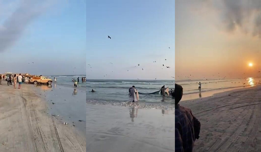 Fishing at Raysut Beach Salalah спокойная береговая рыбалка на фоне портовых кранов и кораблей