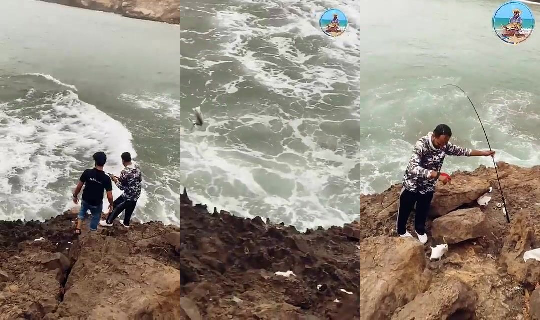 GT hunting на утёсах морская рыбалка в Salalah Oman когда волна бьёт в скалы а клюёт только монстр