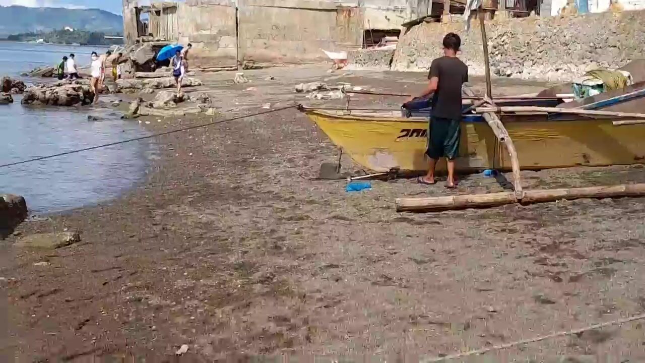 В Talisay Cebu море и рыба по настоящему свежие рыбачим сетями прямо у берега города