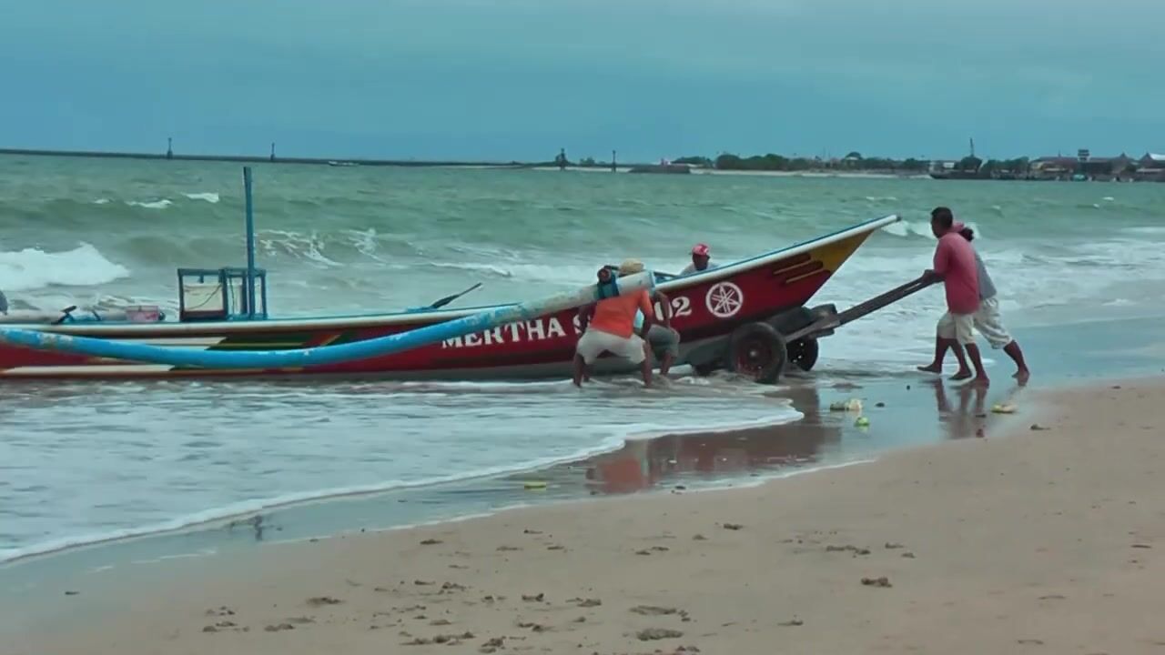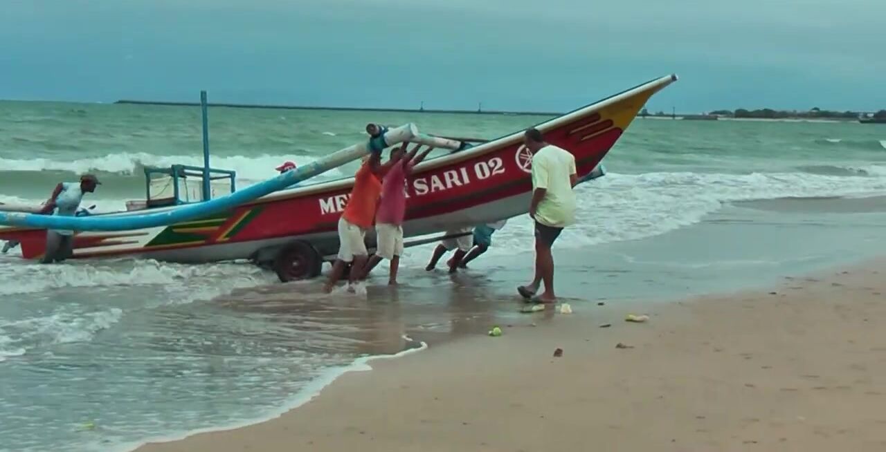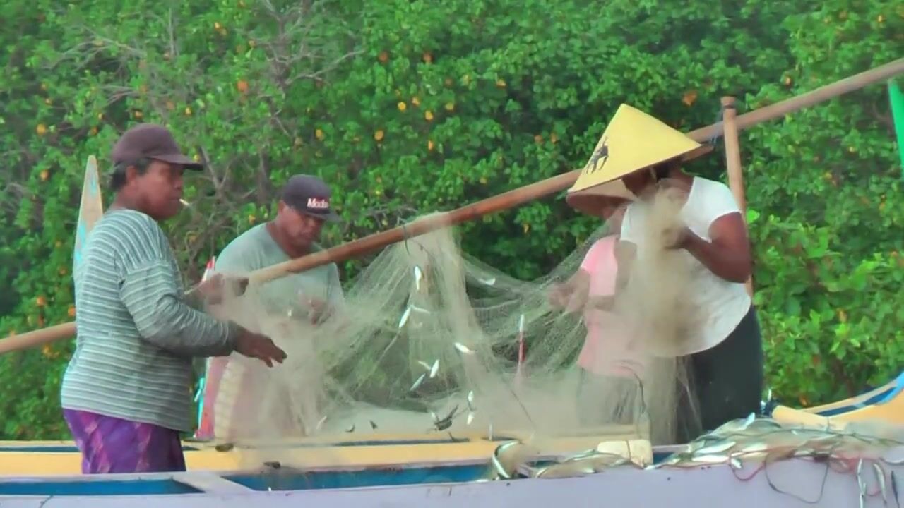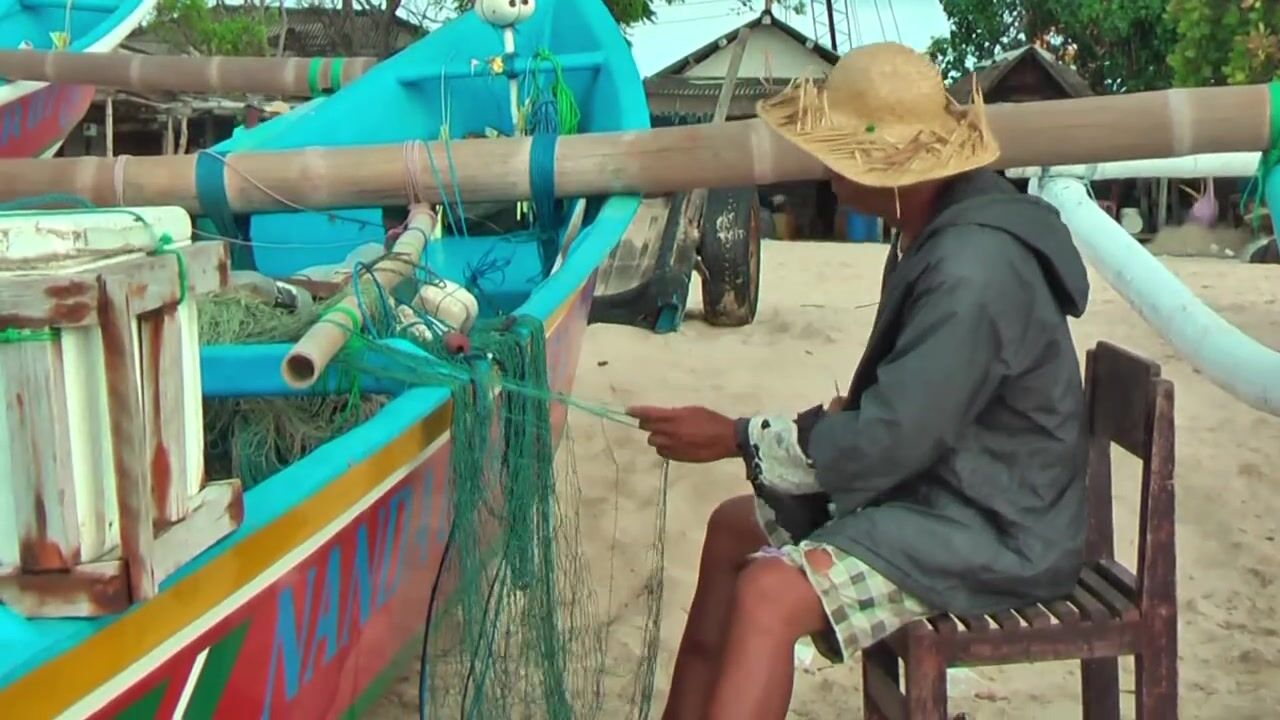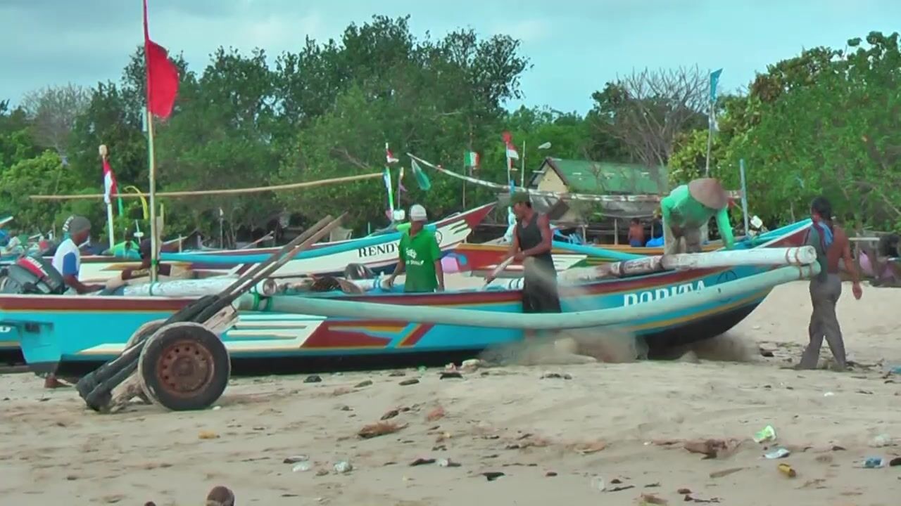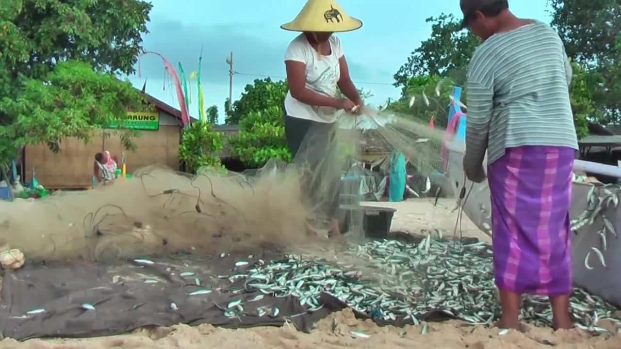 Рыбаки Jimbaran Bali живут и работают прямо на пляже от сети до вечерней рыбалки