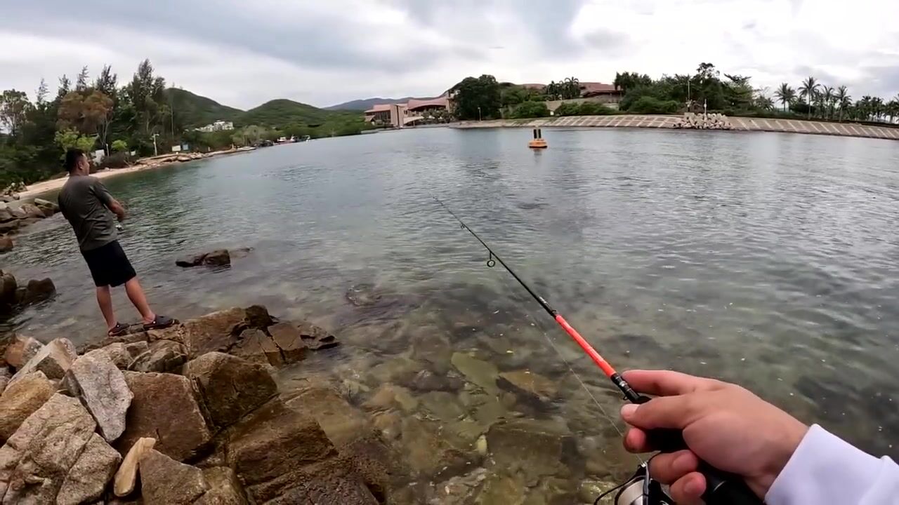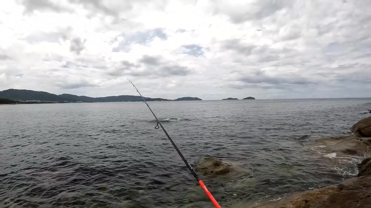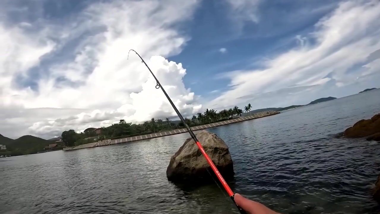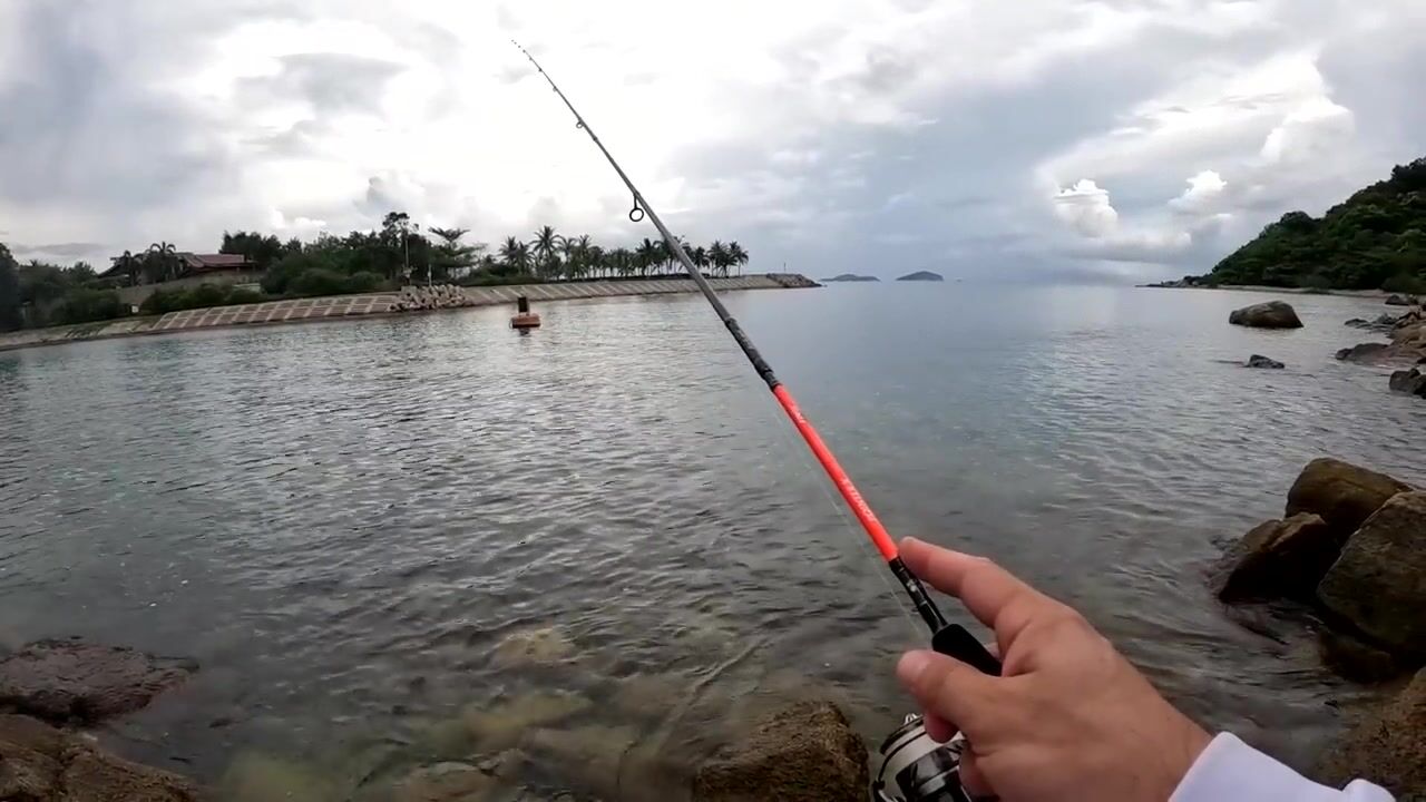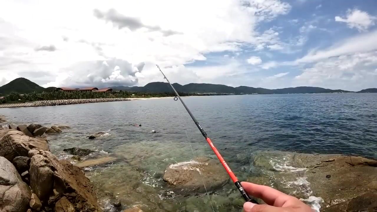 Спиннинг в Китае остров Хайнань береговая рыбалка по морскому хищнику у камней