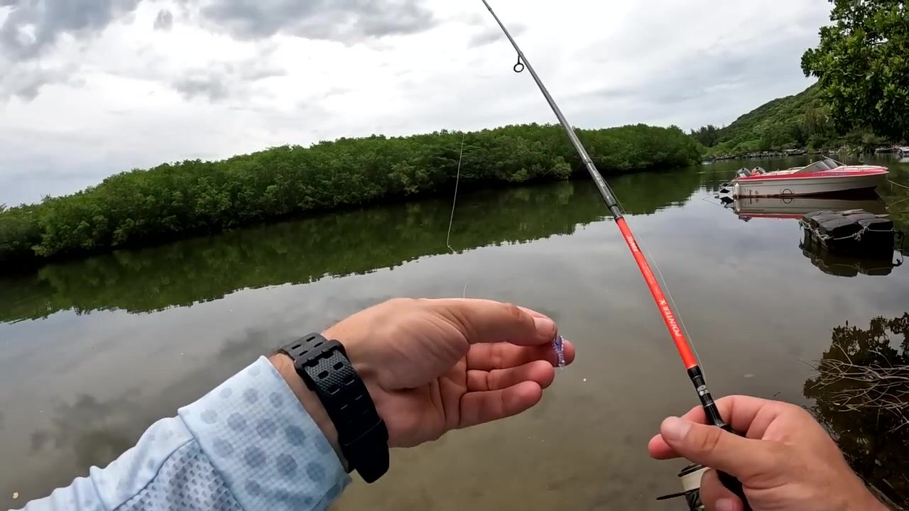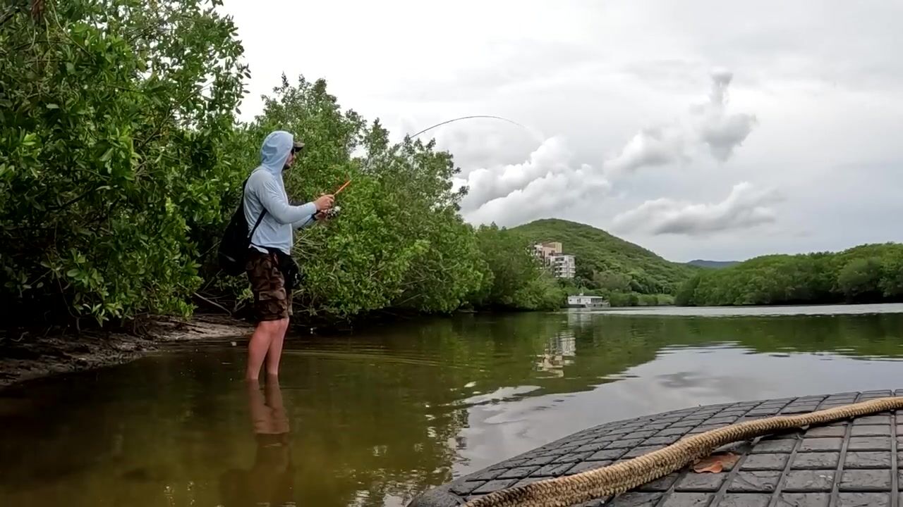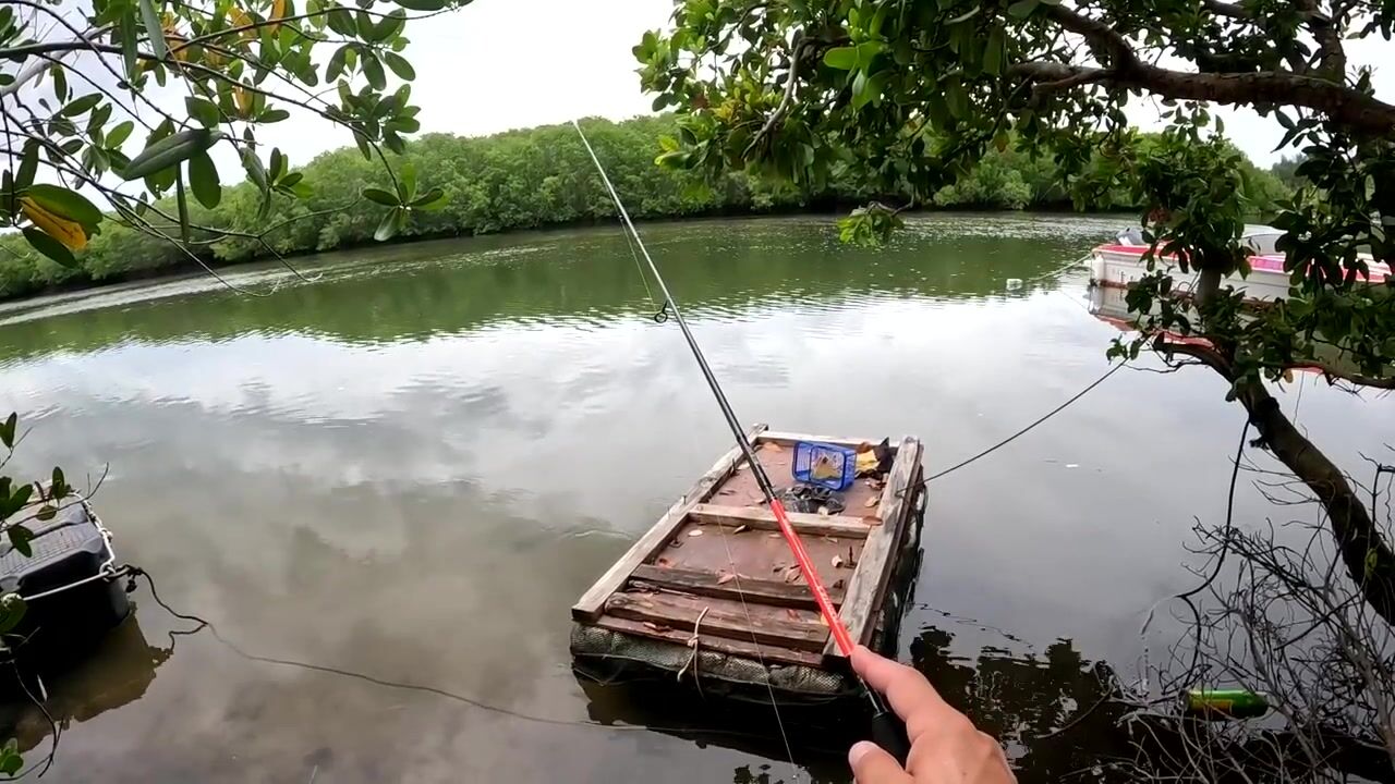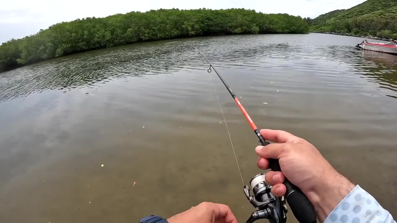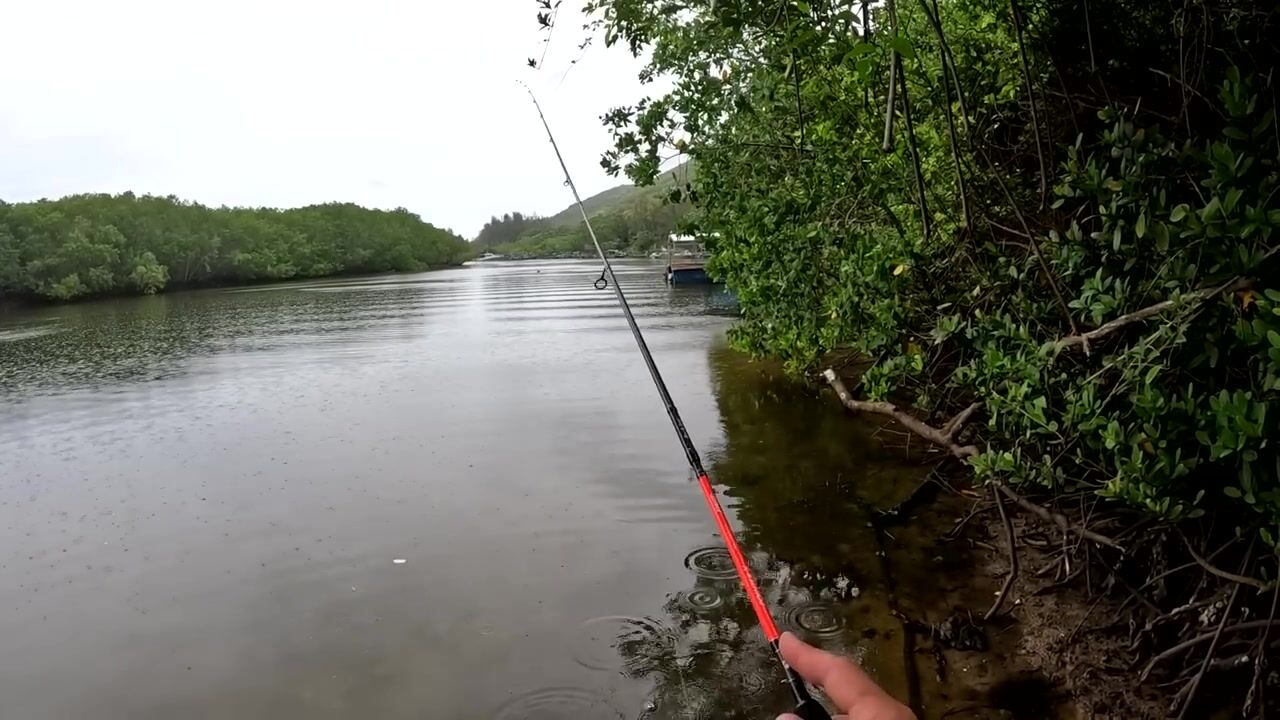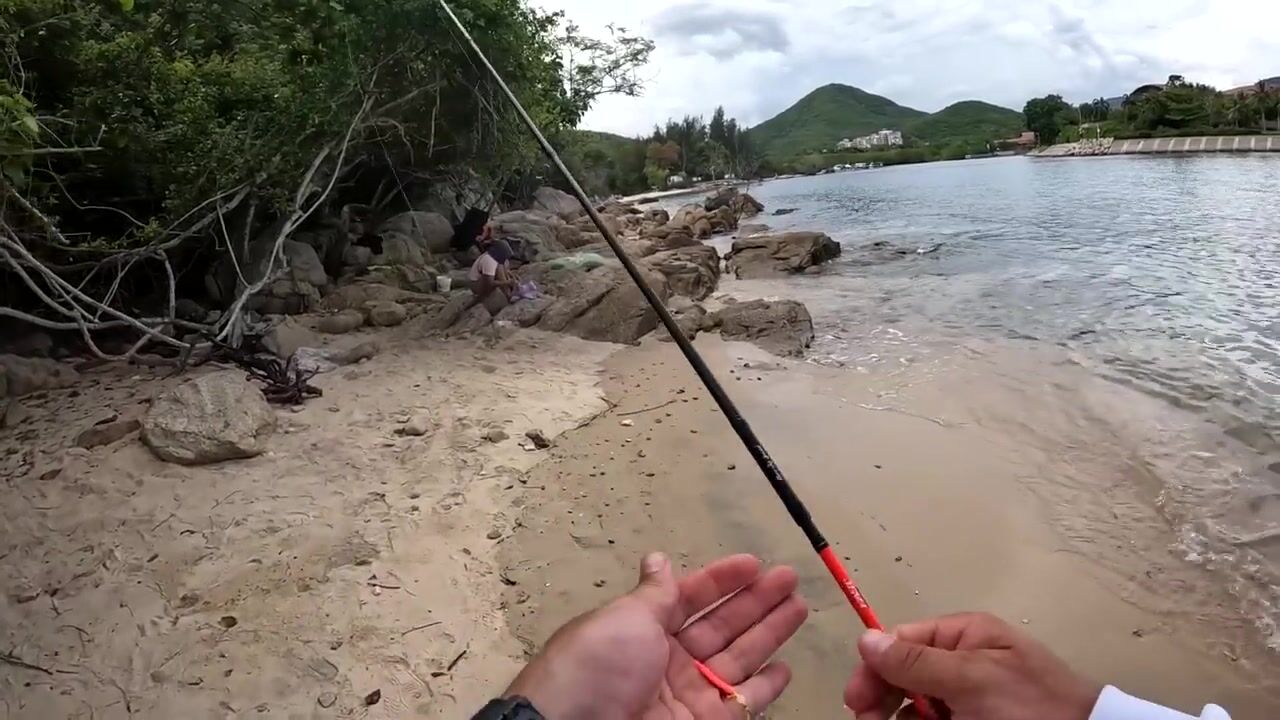 Спиннинг в Китае остров Хайнань береговая рыбалка по морскому хищнику у камней