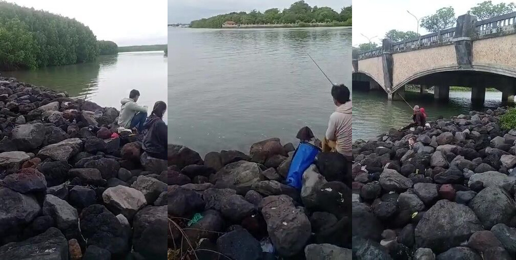 Вирусный спот для рыбалки под мостом Serangan Denpasar Bali опасные скалы и волна
