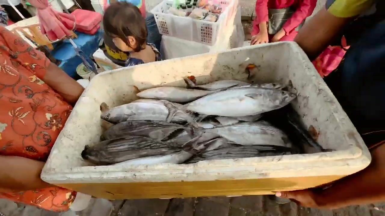 Инспектирую рыбный рынок в Jimbaran Bali свежий улов с ночной морской рыбалки в заливе