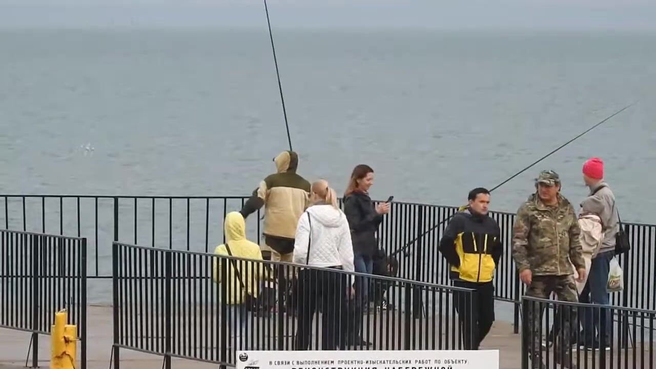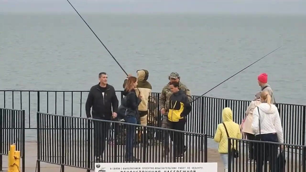 Керчь набережная чуларка на пирсе небольшой но частый улов местных рыбаков