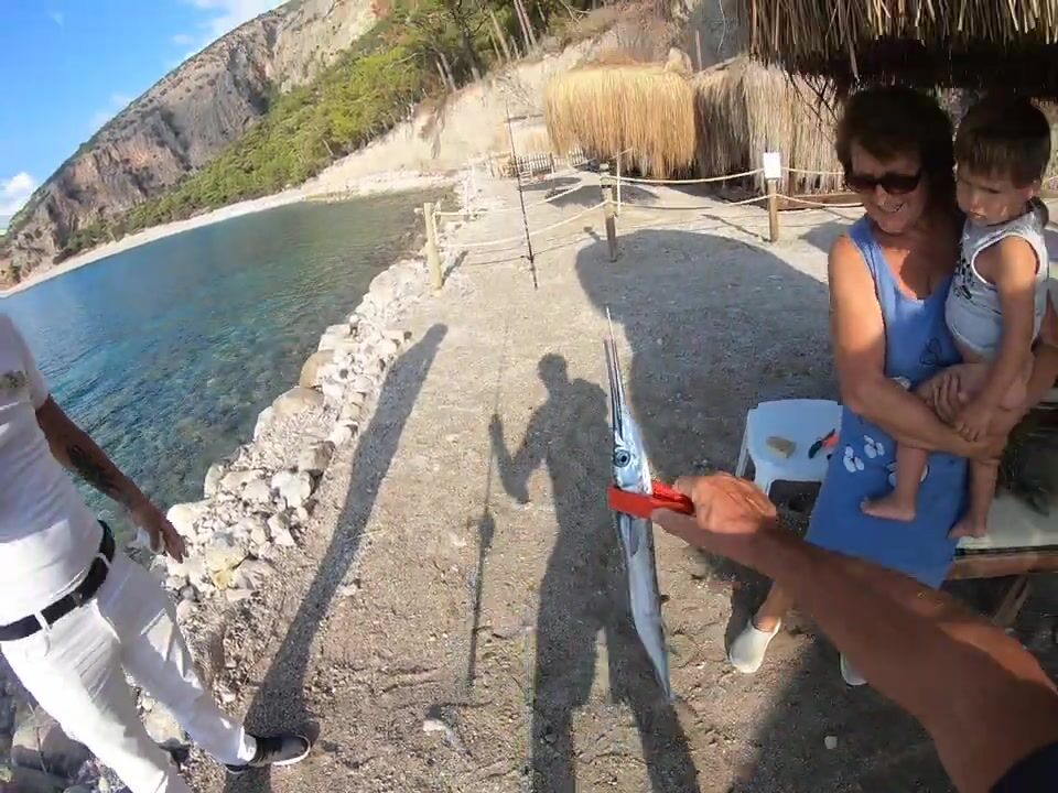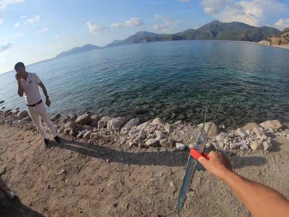 Крупный сарган в Олюдениз Турция ловля у отеля Сентидо