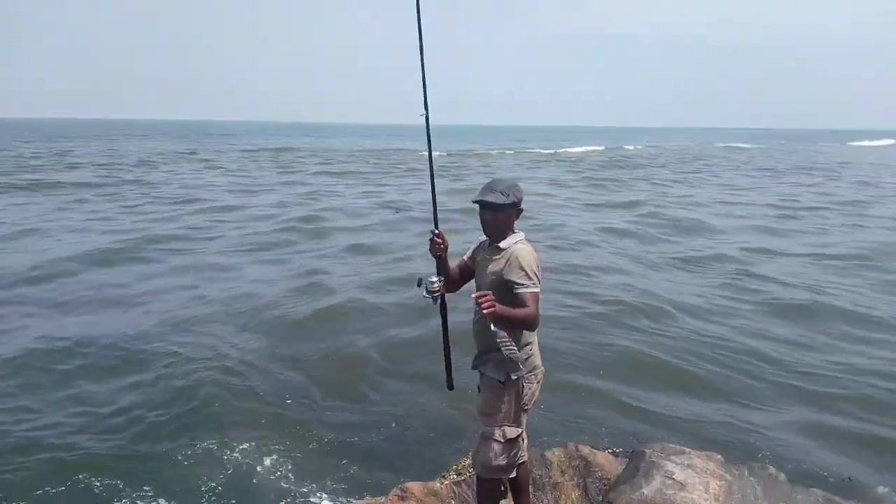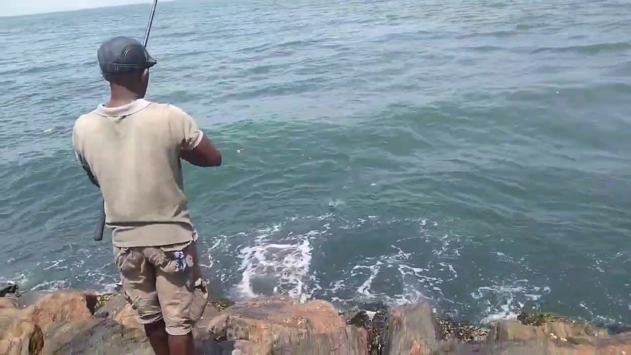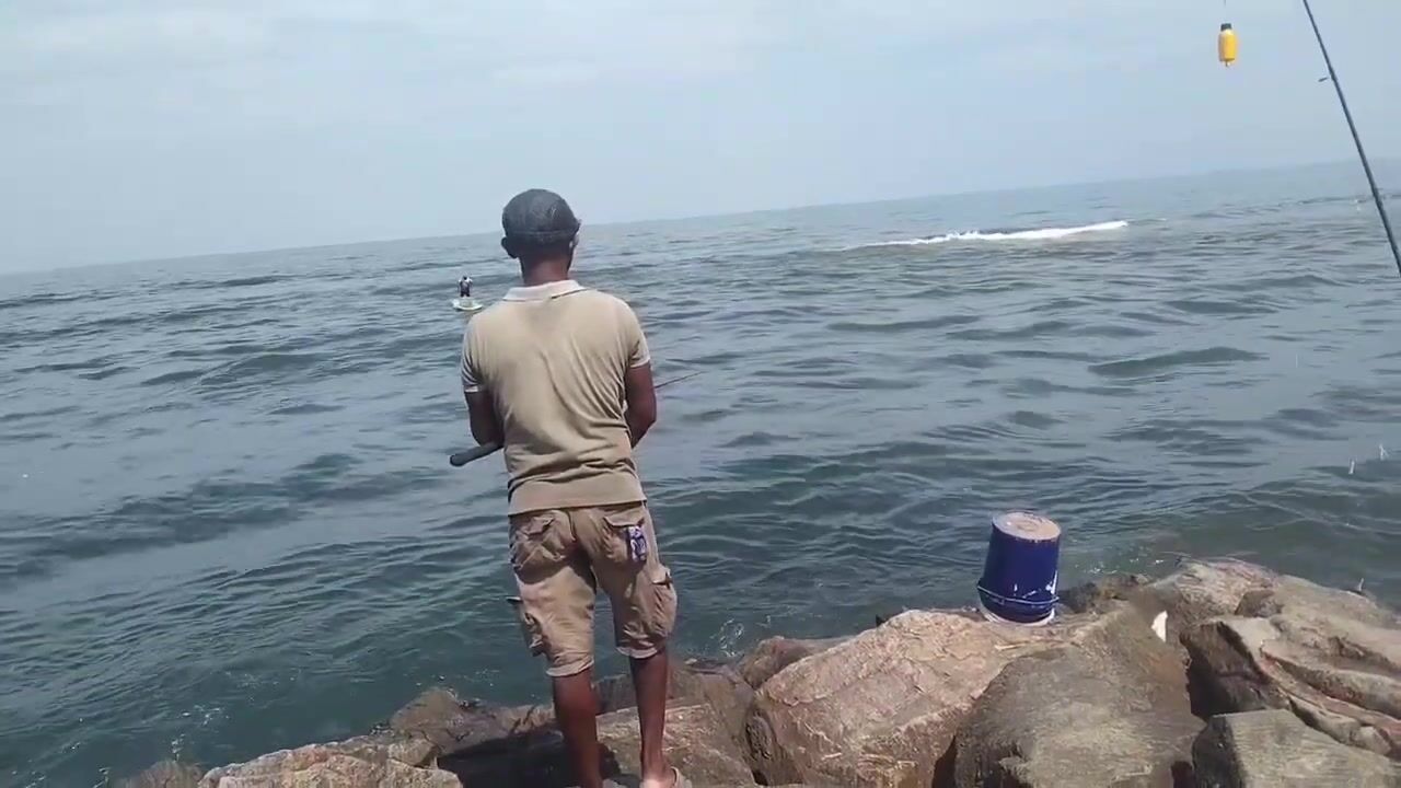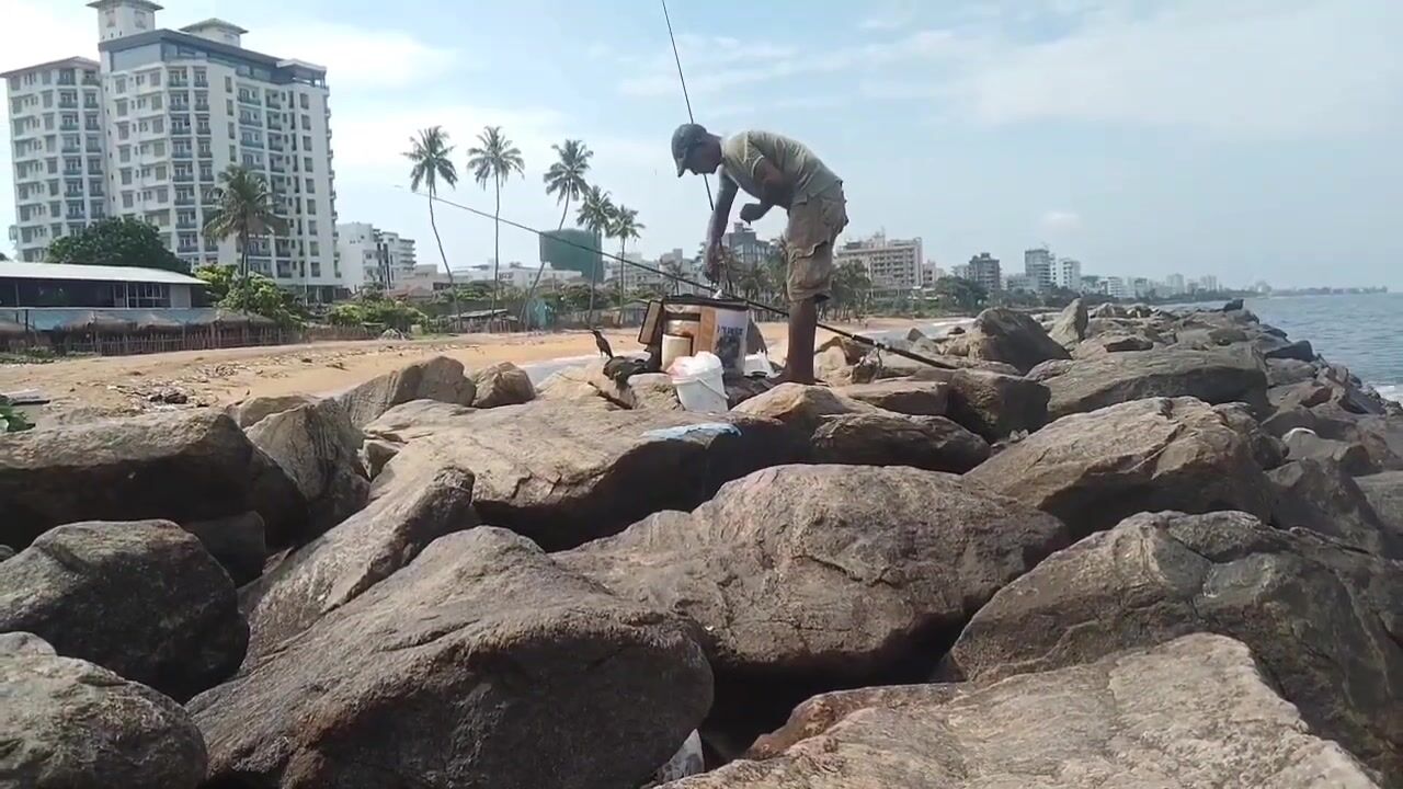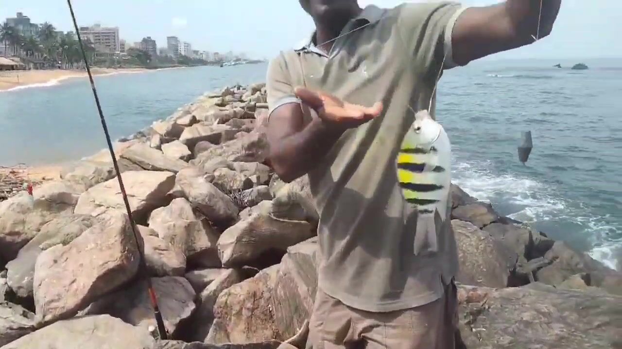 Island Hook Fishing Video улов креветки и рыбы у берега Веллаватте на шумной улице Шри Ланки