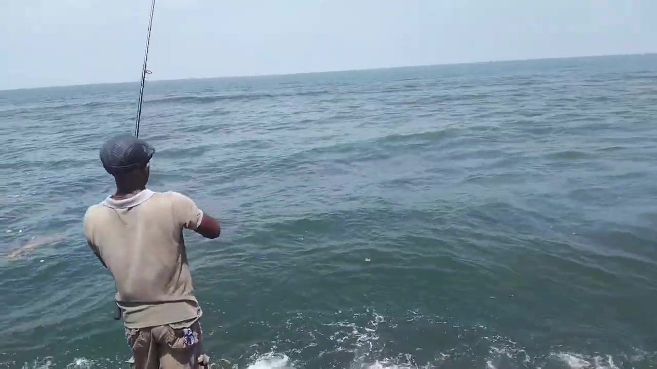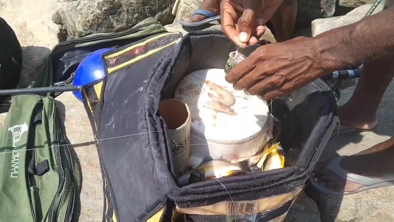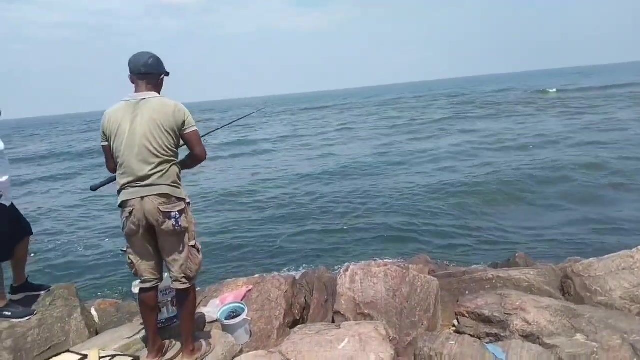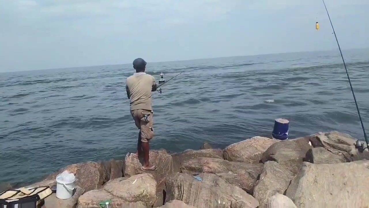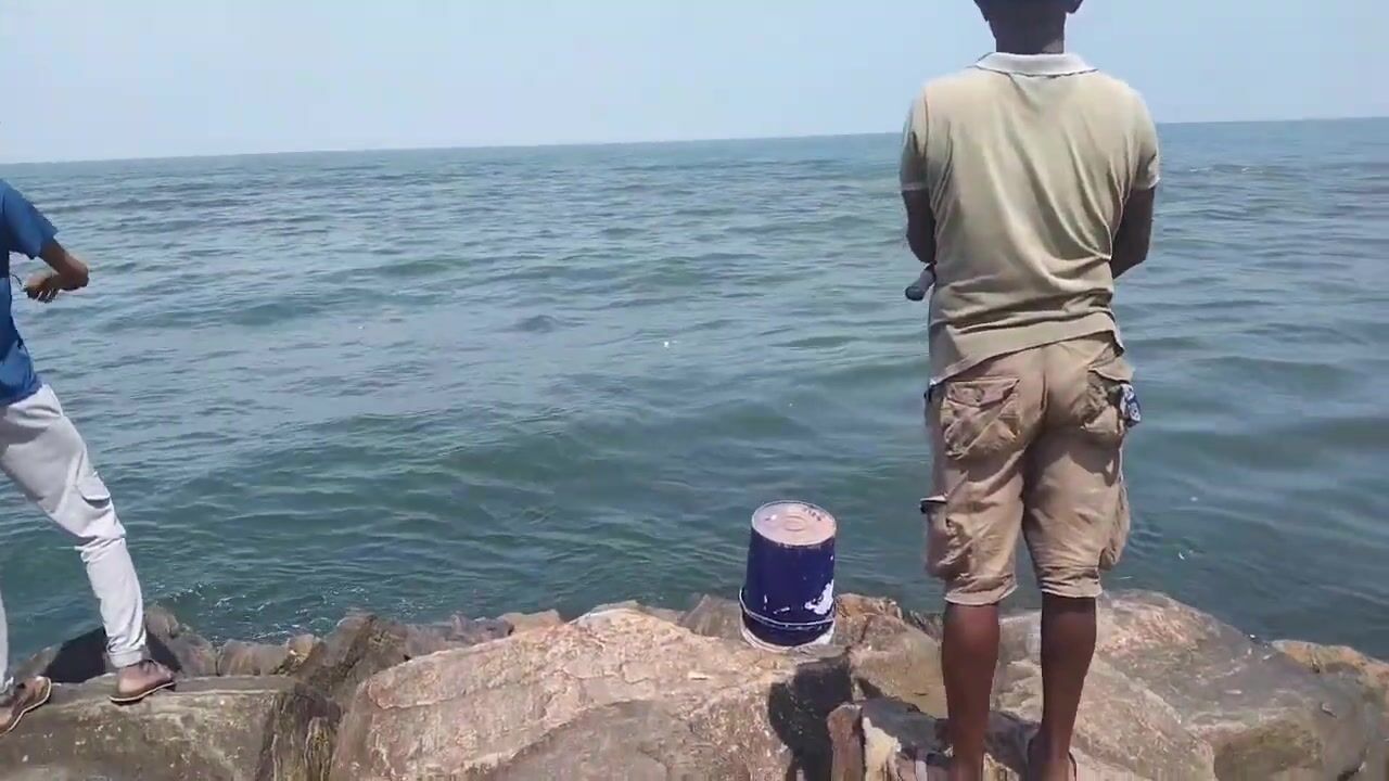 Island Hook Fishing Video улов креветки и рыбы у берега Веллаватте на шумной улице Шри Ланки