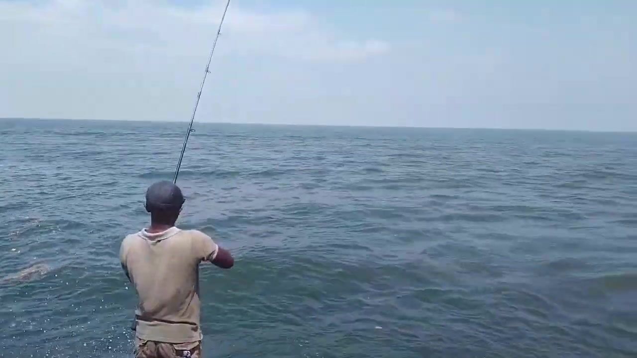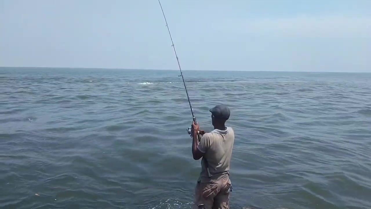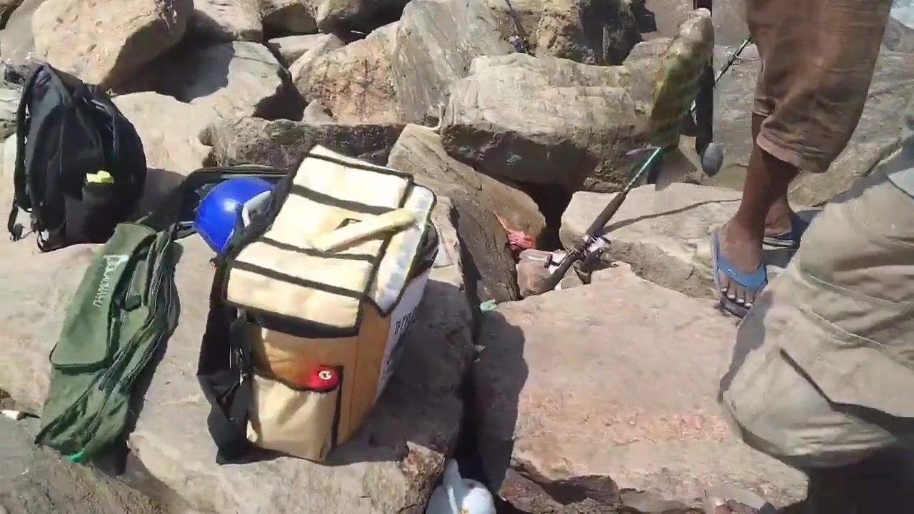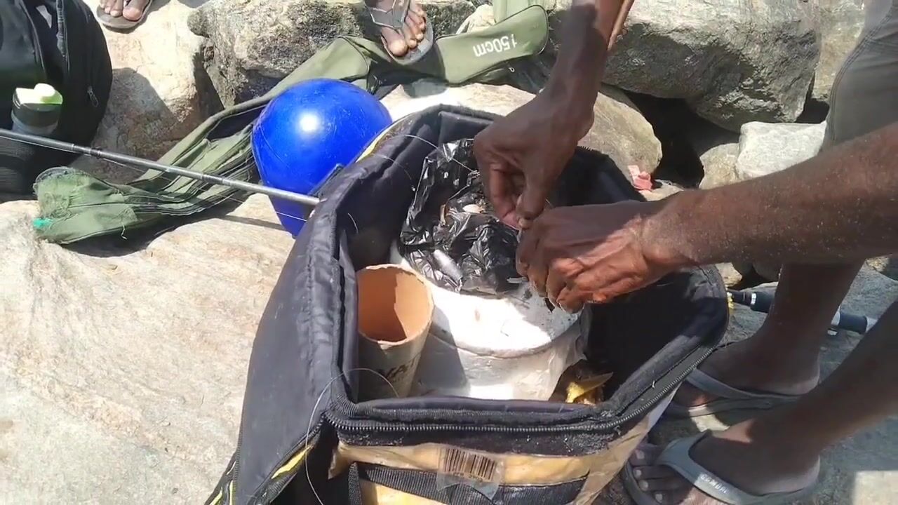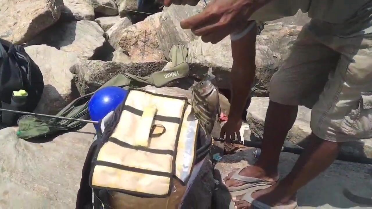 Island Hook Fishing Video улов креветки и рыбы у берега Веллаватте на шумной улице Шри Ланки