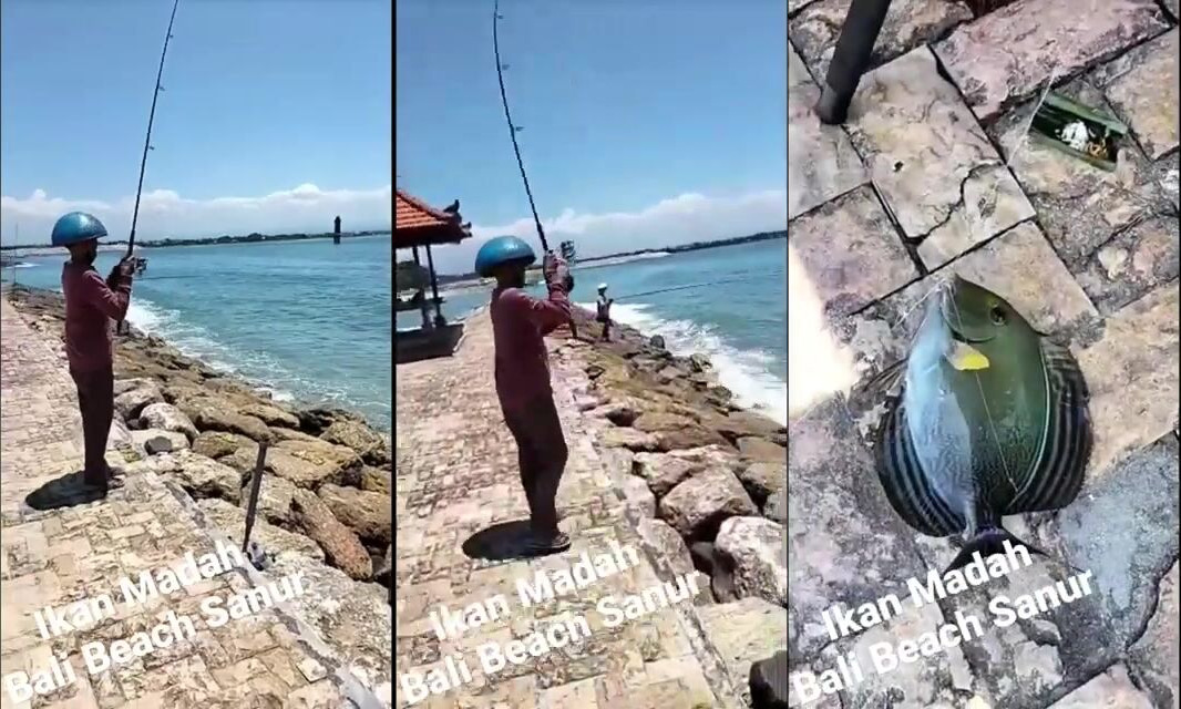 Ikan madah снова на берегу Sanur Bali удачный день рыбалки с песчаного пляжа