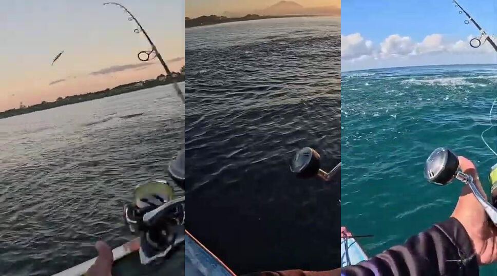 Sanur Bali дикий кастинг по tuna когда море буквально кипит от боилинга и выхода хищника