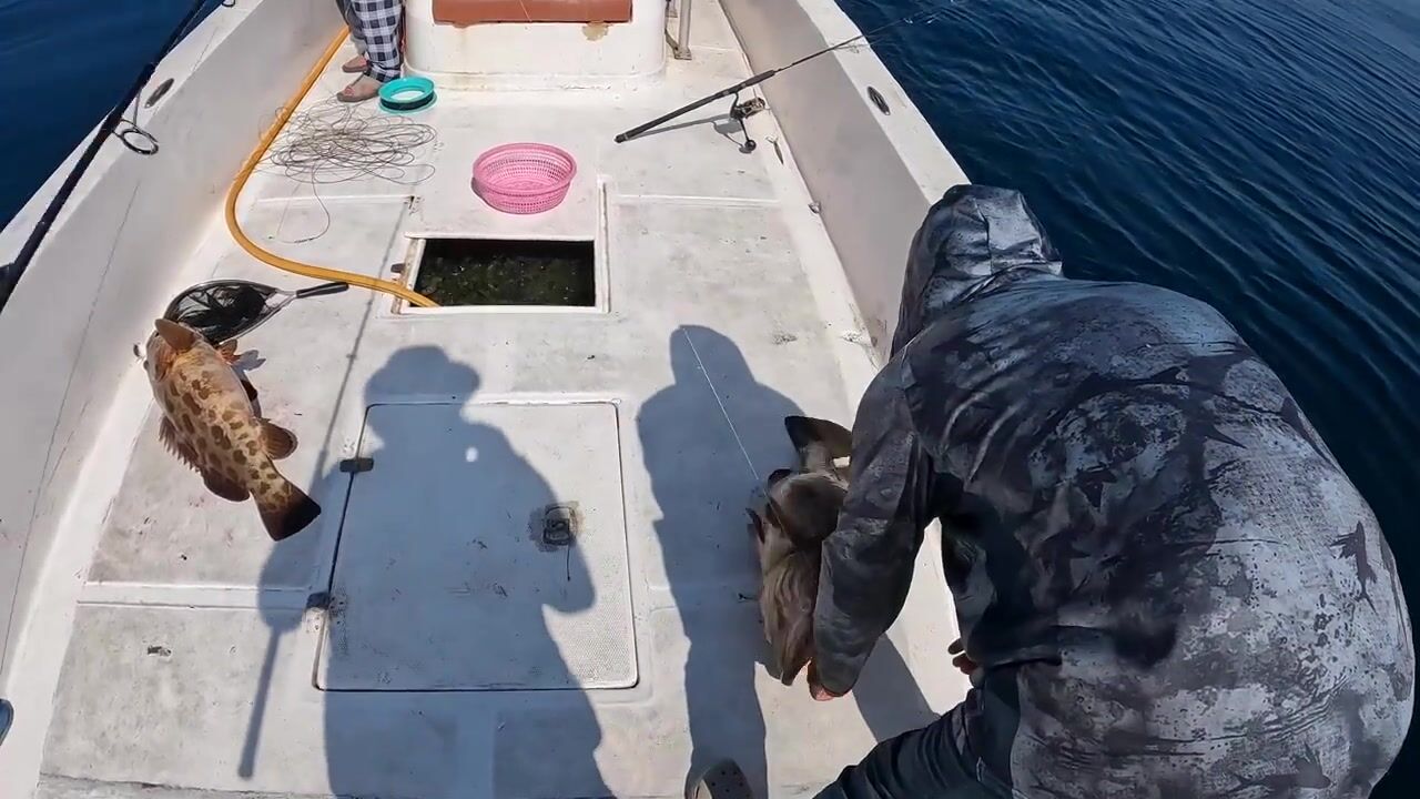 Гигантский GT Oman Salalah морская рыбалка в Индийском океане у скал и рифов Аравийского моря