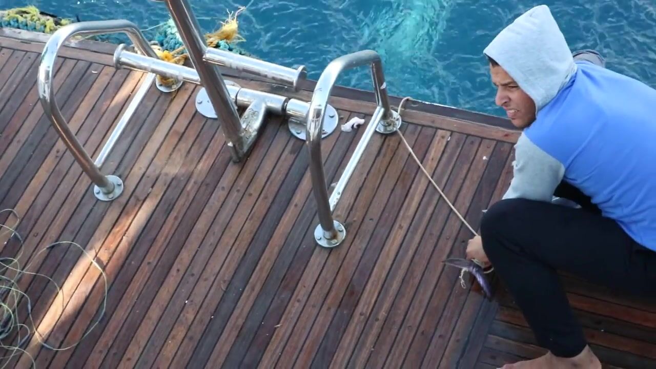 Александрия, Египет — сумасшедший рыбак в порту и клев у волнореза