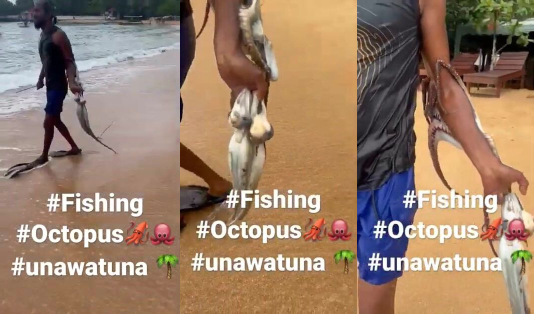 India Sri Lanka Unawatuna осьминог и рыбалка на пляже в одном коротком ролике