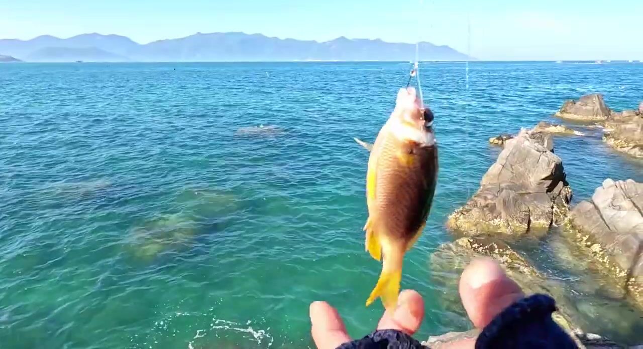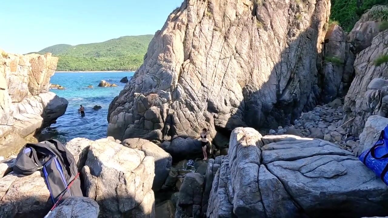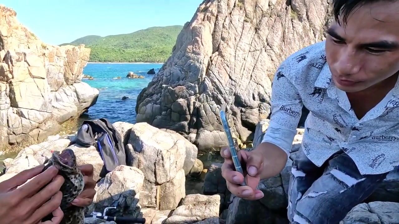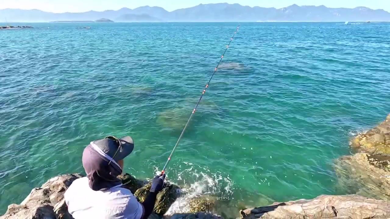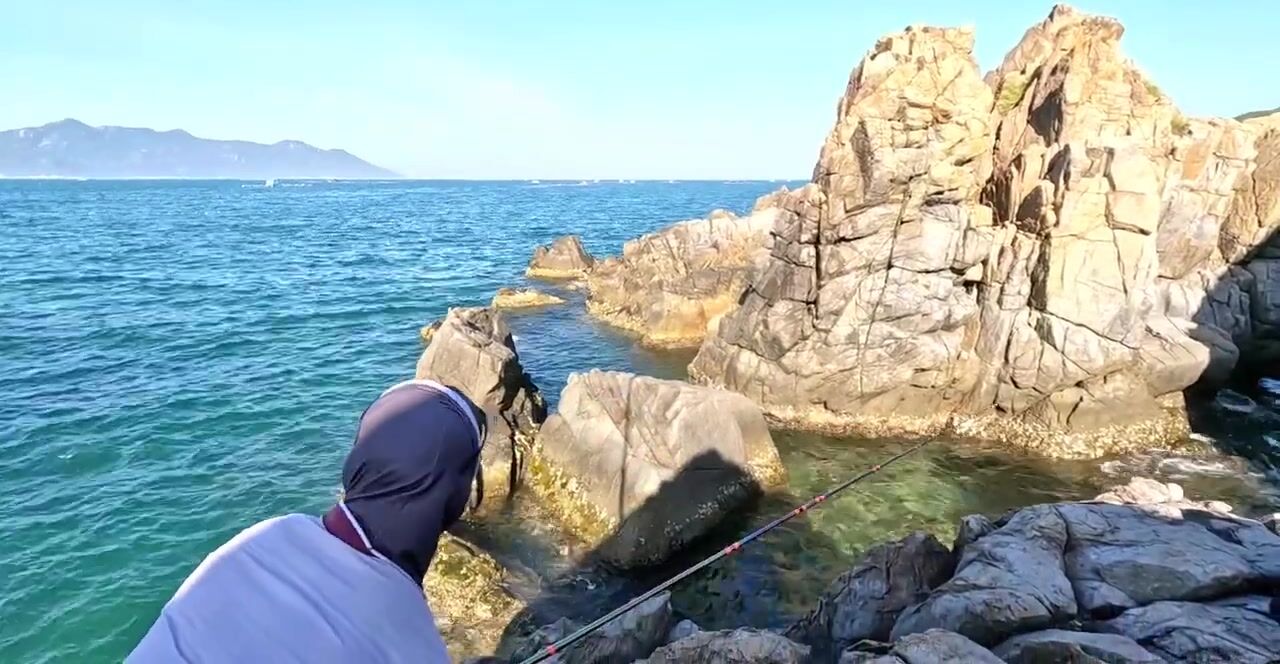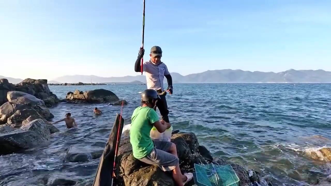 Рыбалка в Нячанге у Hang Heo встреча со стаей groupers у скалистого берега моря