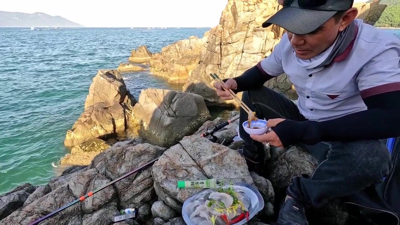 Рыбалка на осьминога на рассвете морская рыбалка в Нячанге с камней и лодок