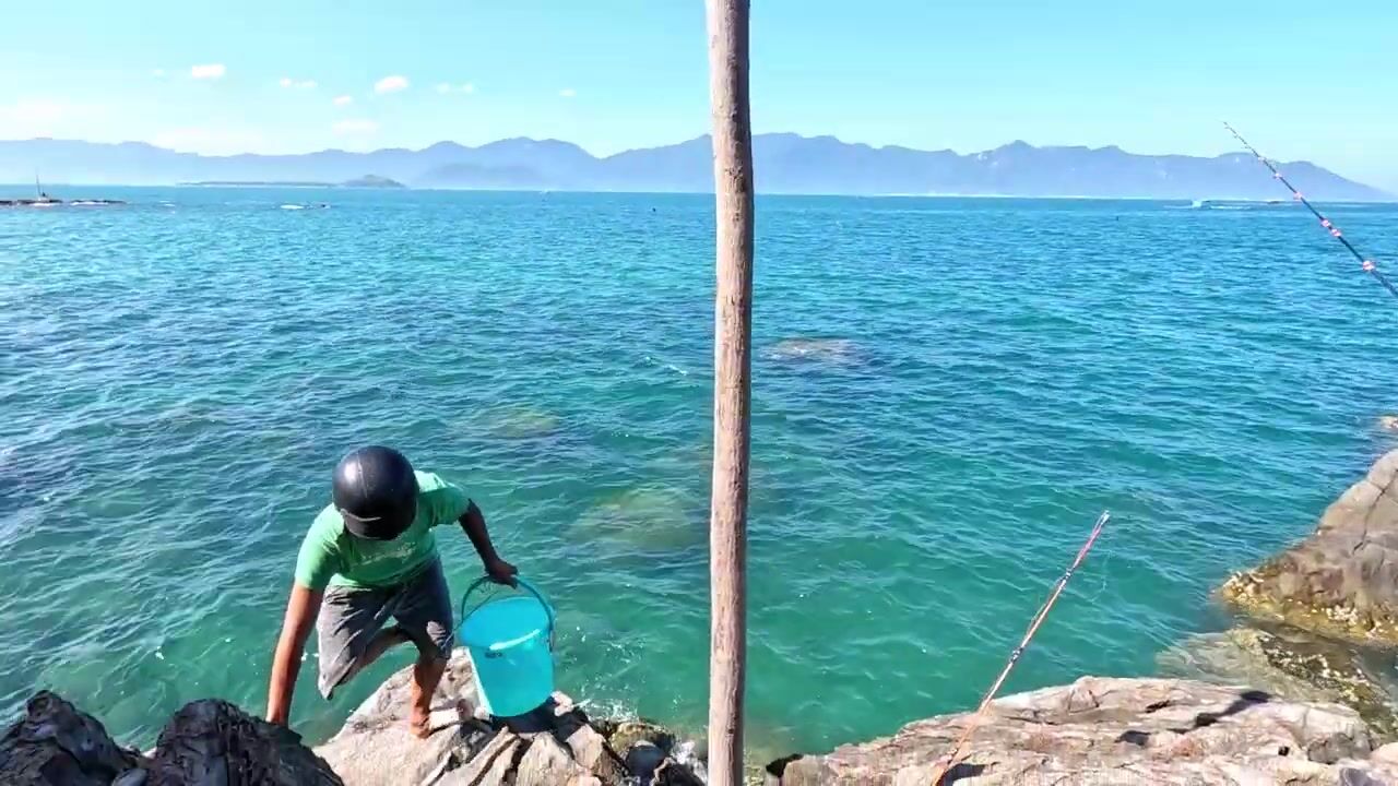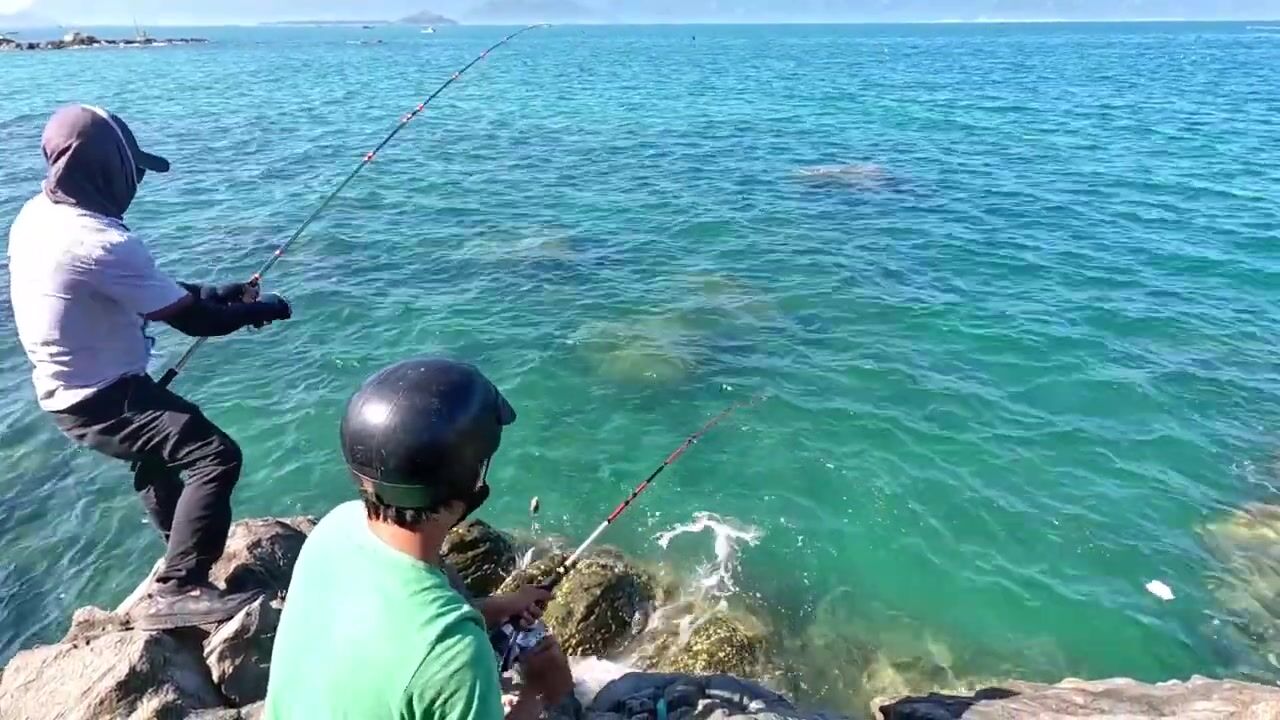 Горячий день в Nha Trang Vietnam рыбалка с берега и большие рыбы на волне Южно Китайского моря