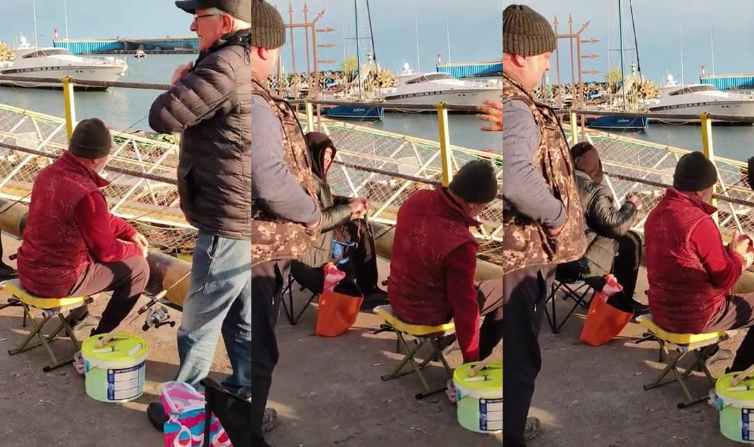 Рыбаки ловят мелкую кефаль в порту Сириуса весенняя береговая рыбалка на Чёрном море