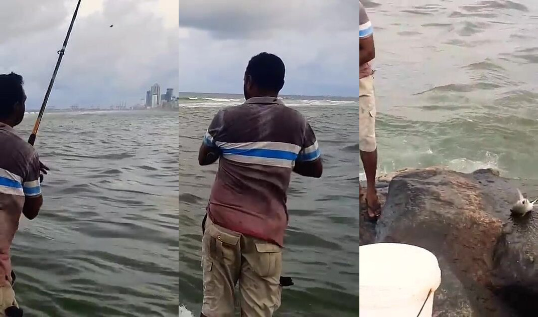 Морская рыбалка в Wellawatte Sri Lanka удивительный клёв у волнореза городского пляжа