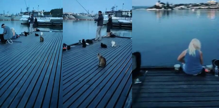 Коты рыбаки в Севастополе как хвостатые охотники встречают свежий улов у моря