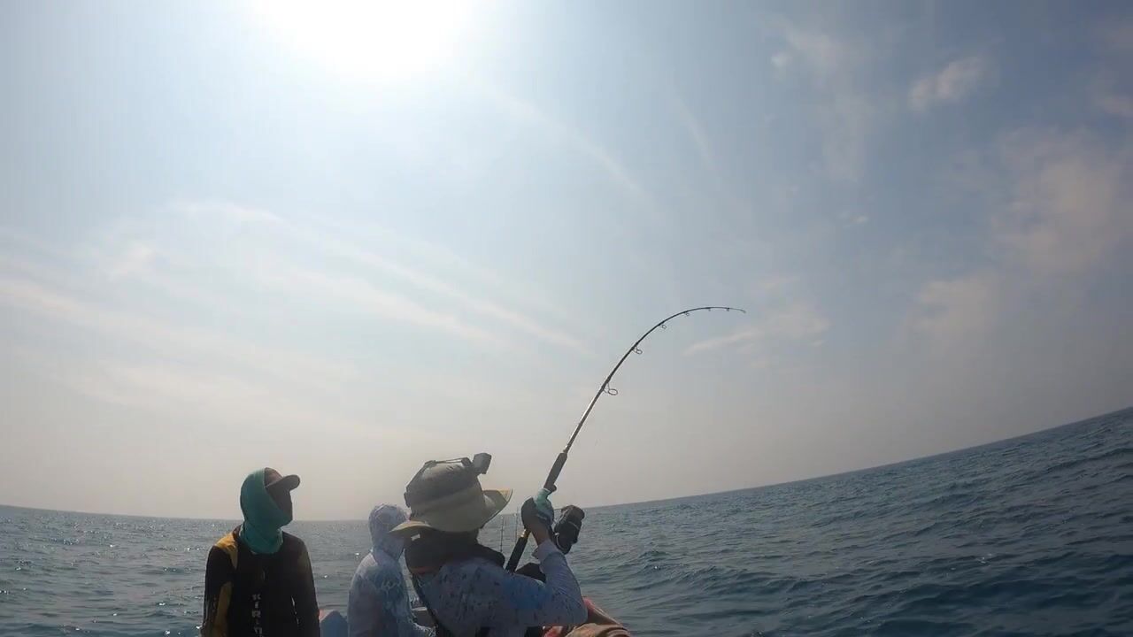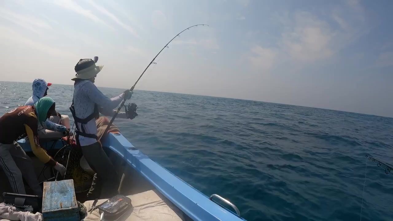 Пробовали вертикалку - скучно, рыба не реагировала. Вся движуха по поверхности. Цвет приманки решает, на бело-розовый и голубой реагировали лучше. Глубина 15-20 м, место чистое, дно песок и камни. Главное - не расслаблять снасть, иначе рыба уходит в риф. По физухе тяжело, особенно под солнцем, руки потом не гнутся.