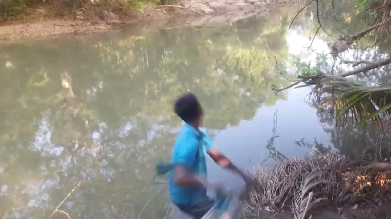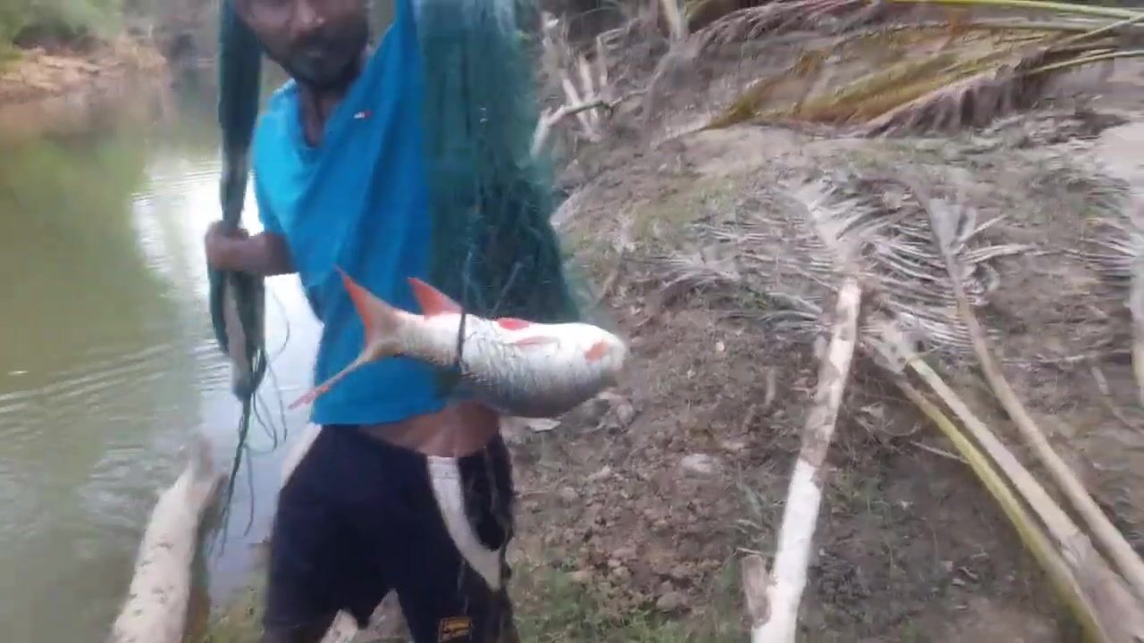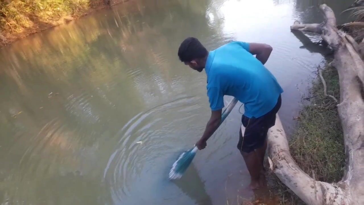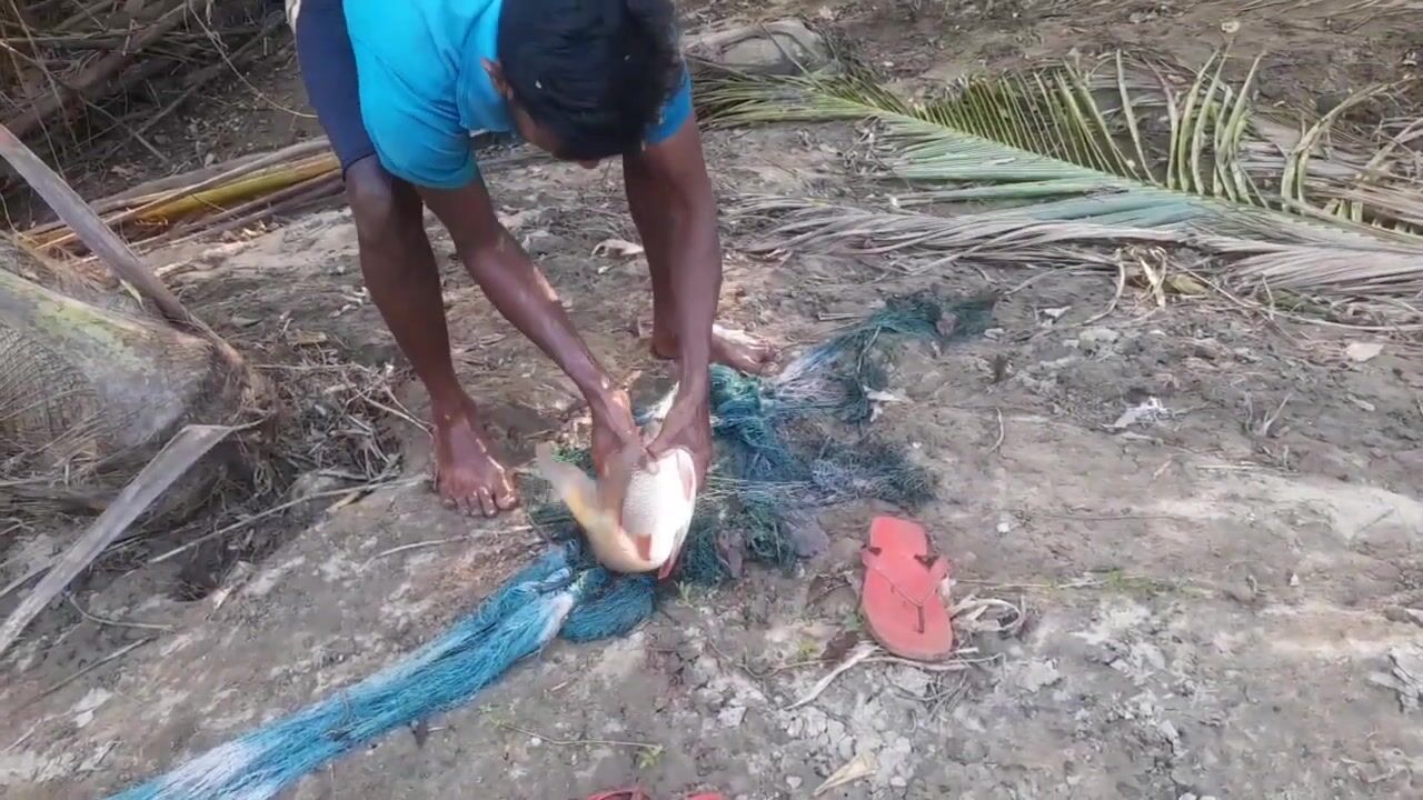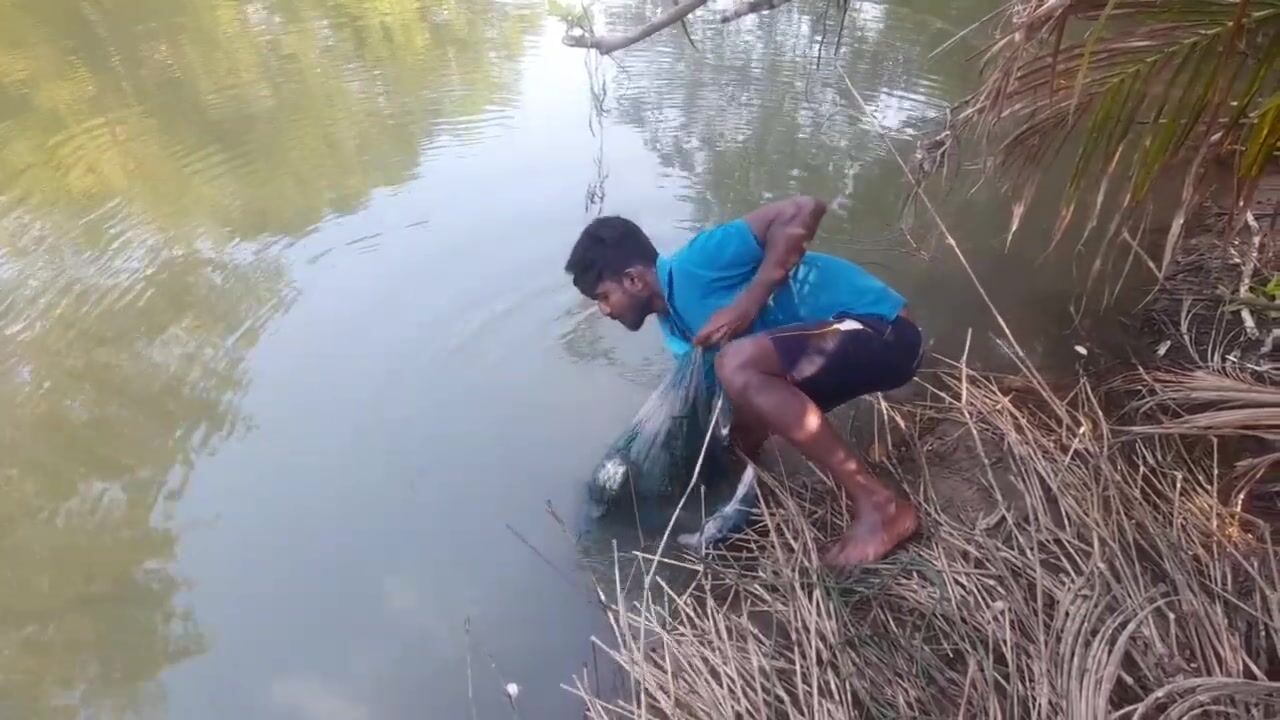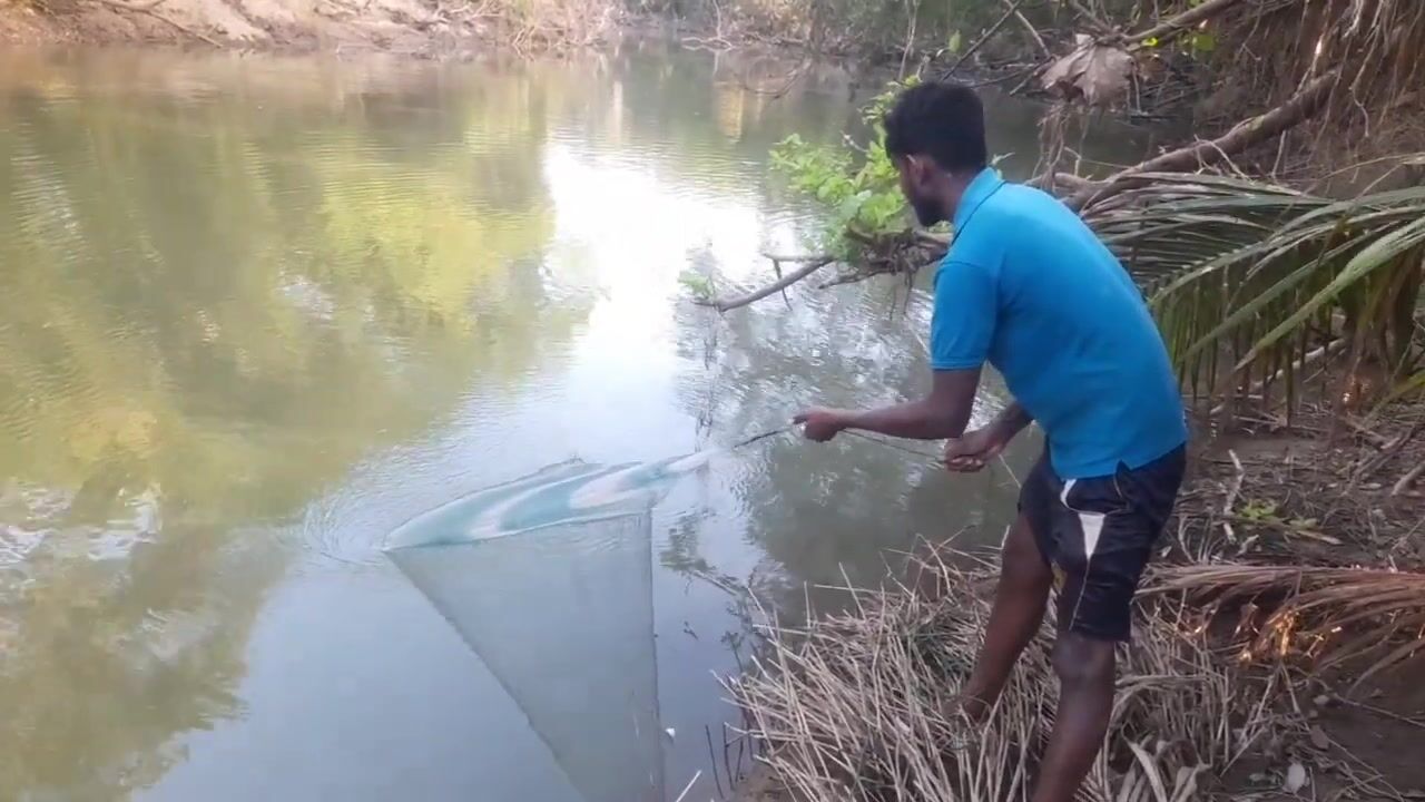Ловля крупного rohu в реке Kirindi Oya традиционная рыбалка сетью на Шри-Ланке