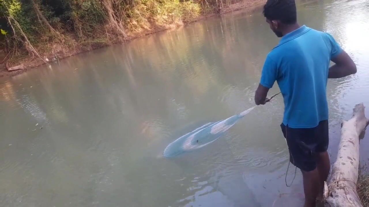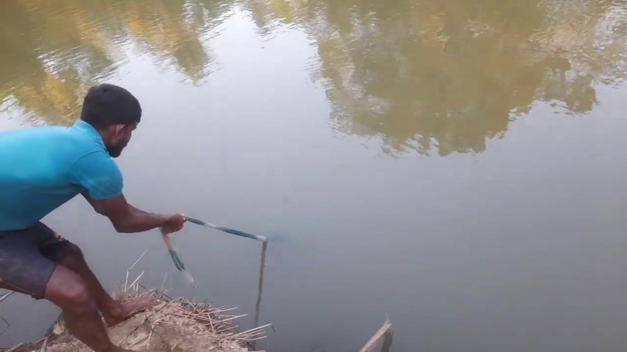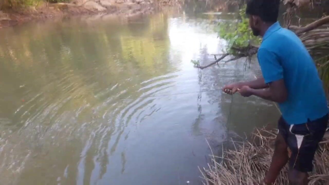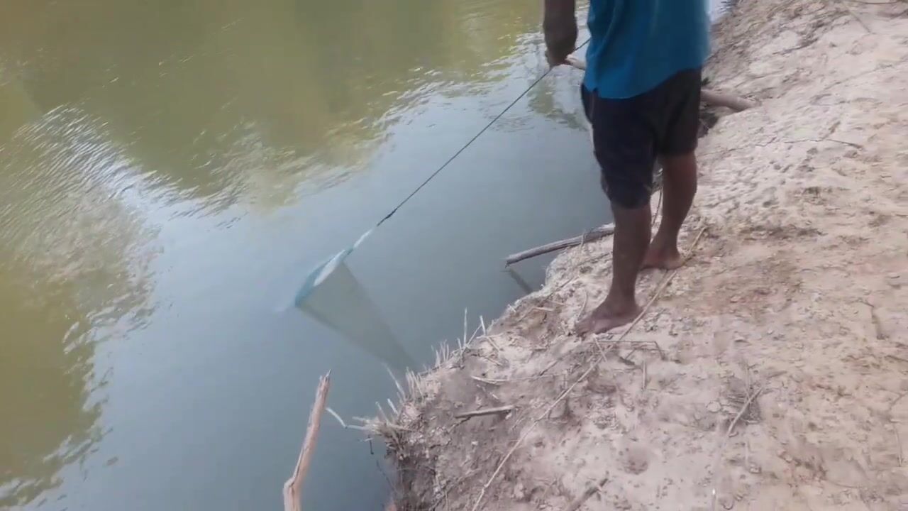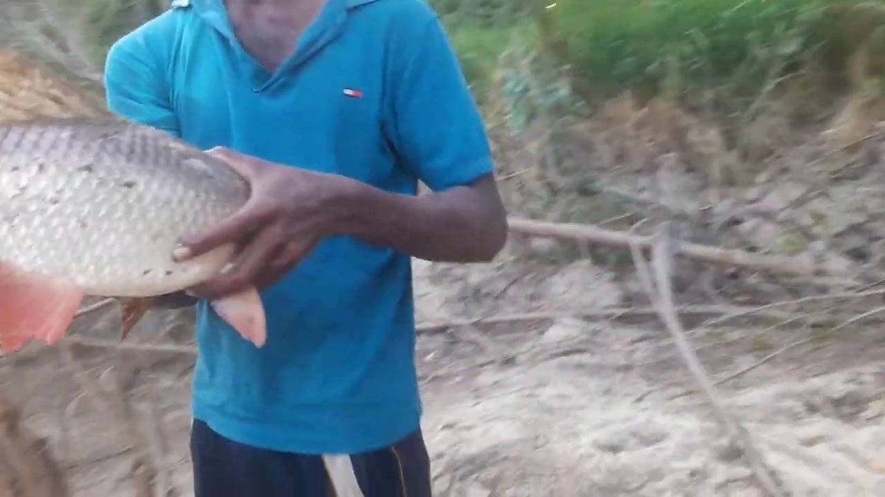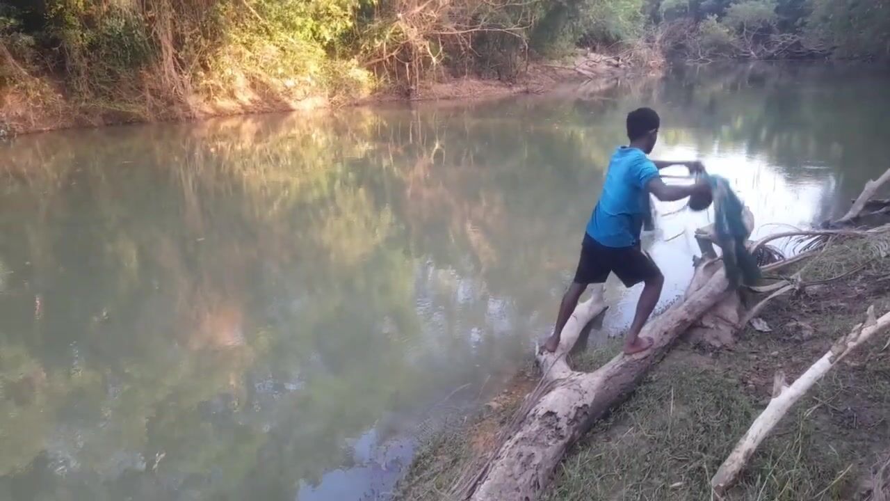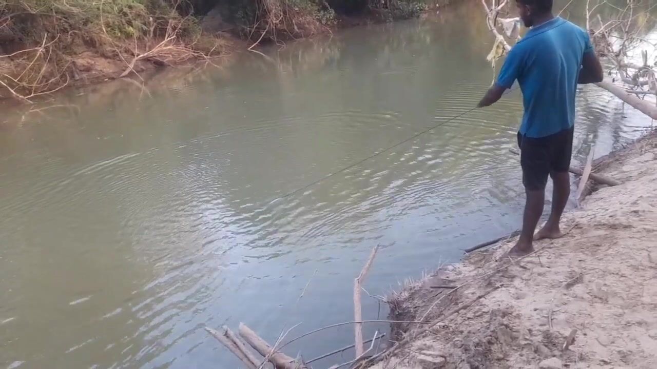 Ловля крупного rohu в реке Kirindi Oya традиционная рыбалка сетью на Шри-Ланке