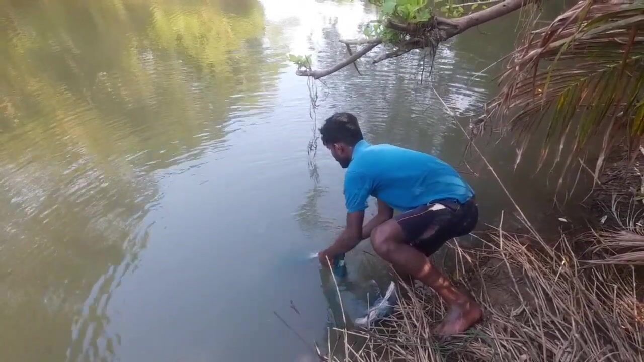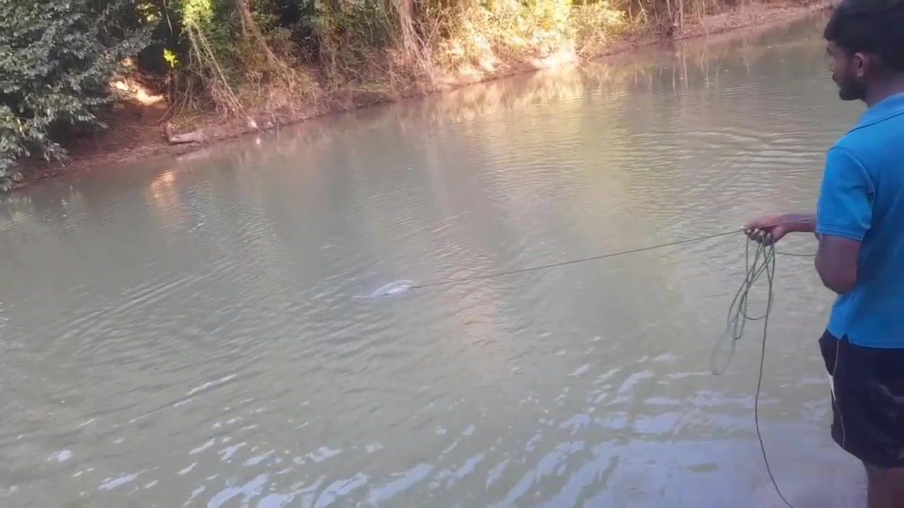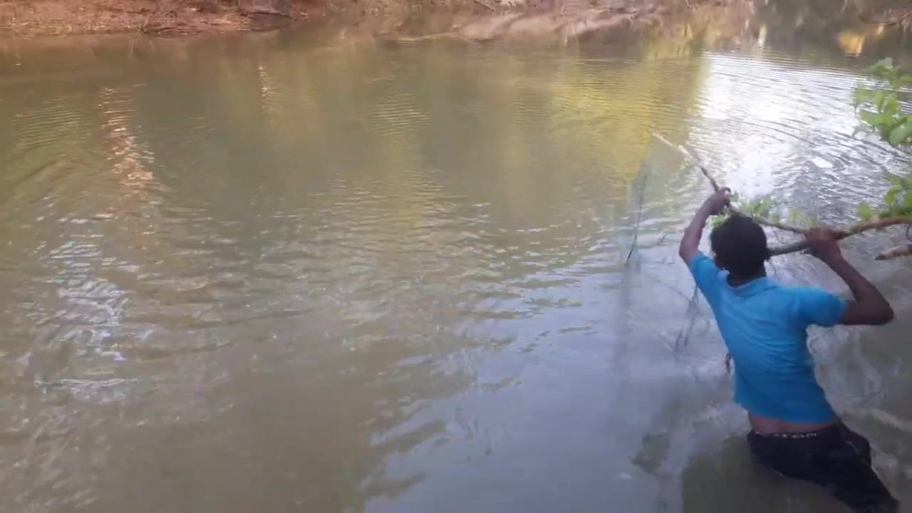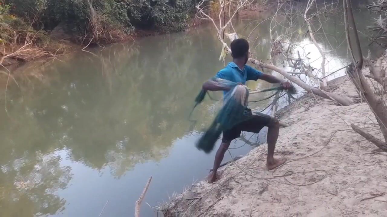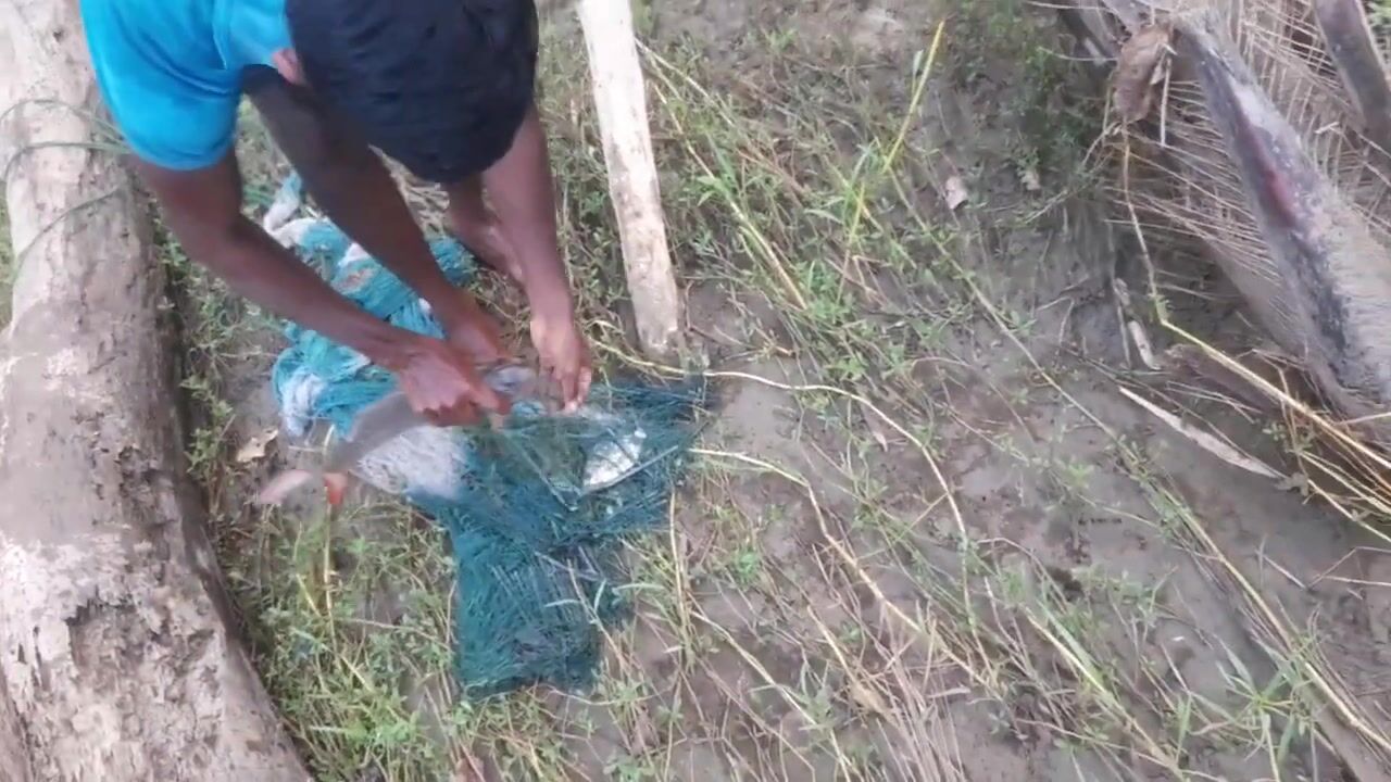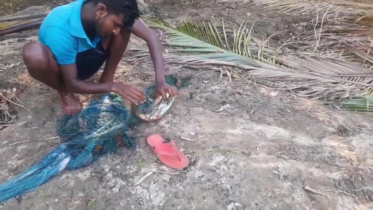 Ловля крупного rohu в реке Kirindi Oya традиционная рыбалка сетью на Шри-Ланке