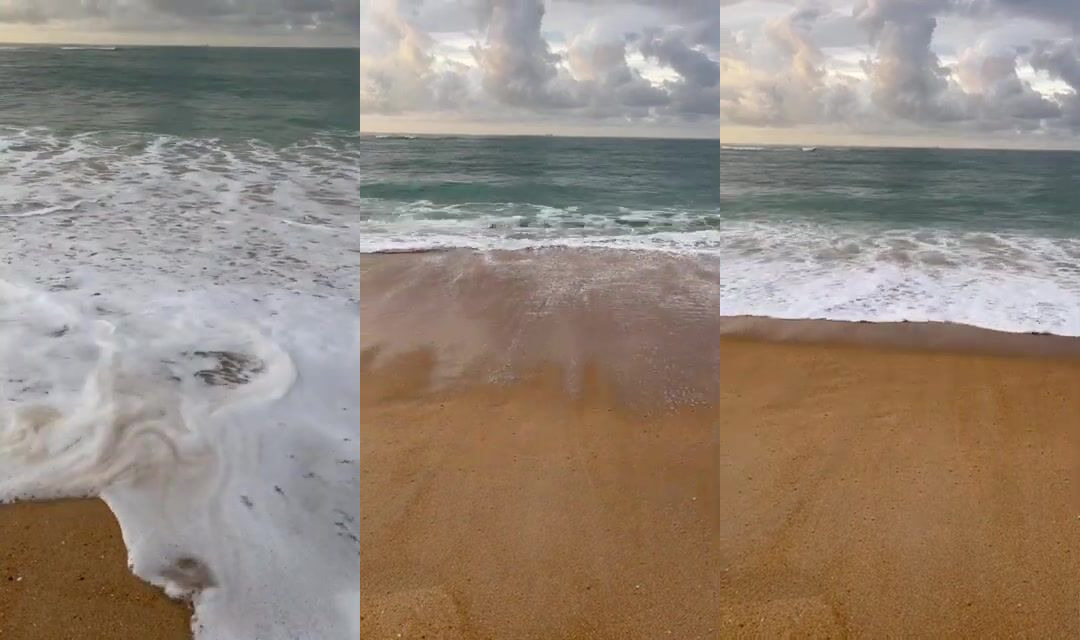 Unawatuna пляж утром волна и кто ходит с удочкой у камней