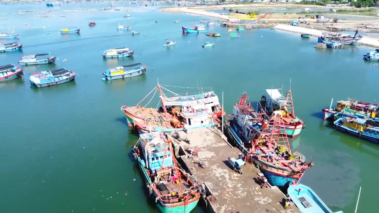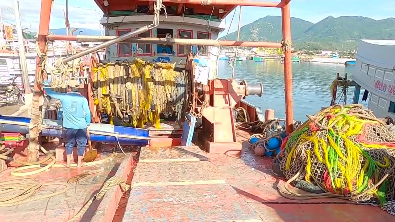 Cam Ranh Fishing Harbor во Вьетнаме выгрузка улова и шум порта