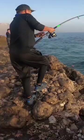 Fishing in Salalah Oman рыбалка у скал и песчаных пляжей когда волна меняет рельеф дна