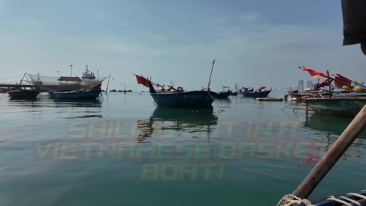 Da Nang, Vietnam — обычная лодка, но приглядись: рыбалка у стенки порта работает?
