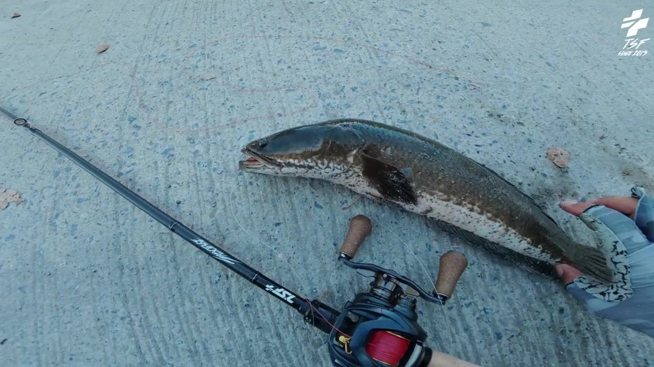 Крупный snakehead на придорожном споте в Таиланде и бодрый выезд с утра