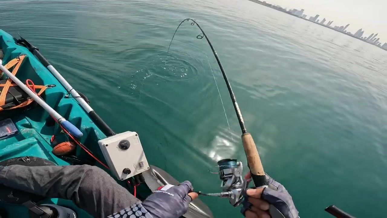 Dubai UAE - морская рыбалка с каяка ультралайт джиг по kingfish и GT