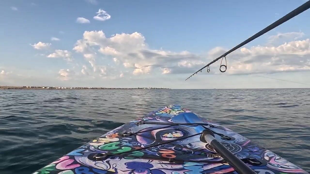Оленевка радует прозрачной водой. Заселился в «Сансет» рядом с «Экстрим Крыма»: душ, прачечная, трейлеры от простых жестяных до террас, после дождя грязновато. Ночью комары — спас Раптор, утром тётушка с чебуреками и самсой по 100. На «Чаше любви» ставлю ставку на 5 крючков и пилькер, в гроте предупреждение про гадюку. В Голубой бухте медузы, на берегу камни — зацепы постоянные. На Большом озере за 20 минут две ставриды, точку не раскрыл. Утром ищу плавник на крышу 40 минут, без него лодка как парус — управляемость беда. Пошли мелкие, затем три крупные ставриды, смена пилькера помогает. Троллингом добираю ещё десяток, камера села, снимаю улов на суше. Переезд в Окуневку: людей мало, водоросли, но спокойно. К концу отпуска ветер унёс медуз, вода стала тёплой и чистой — прекрасная точка.