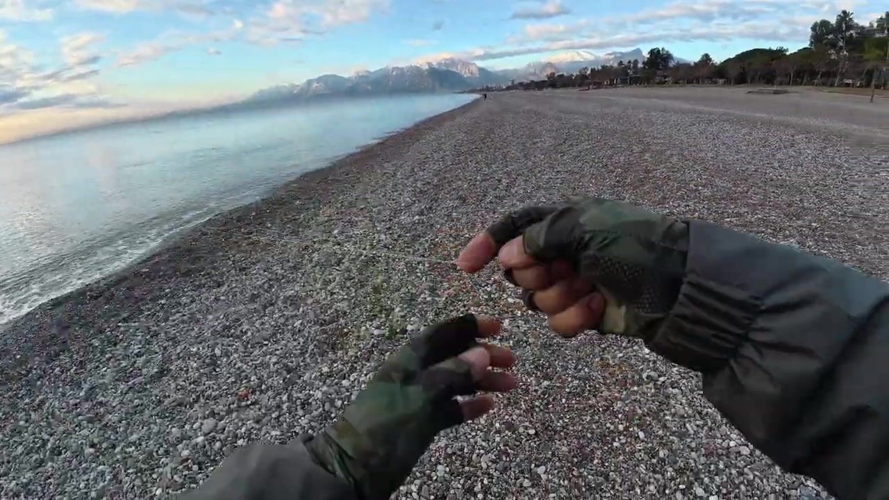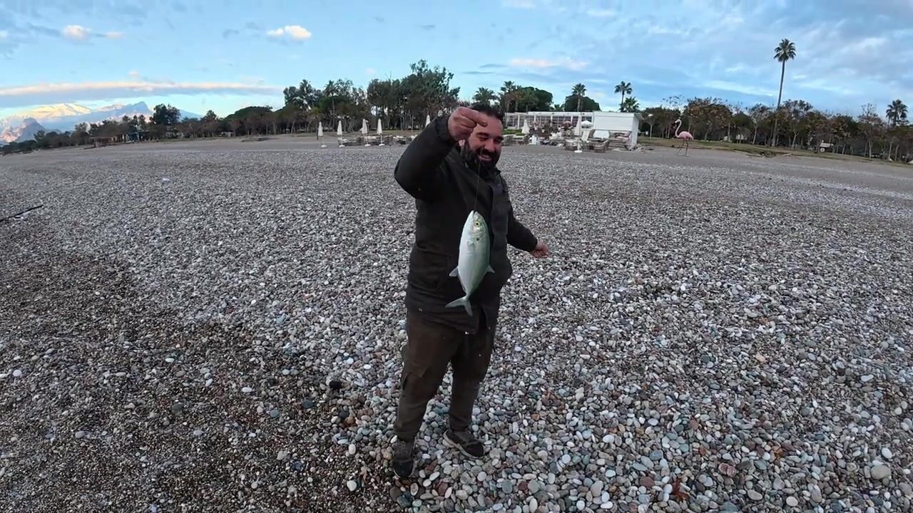 Antalya Lara Sahili kıyı spin Kuzu Balığı 75cm как вытащили