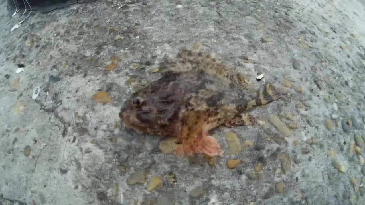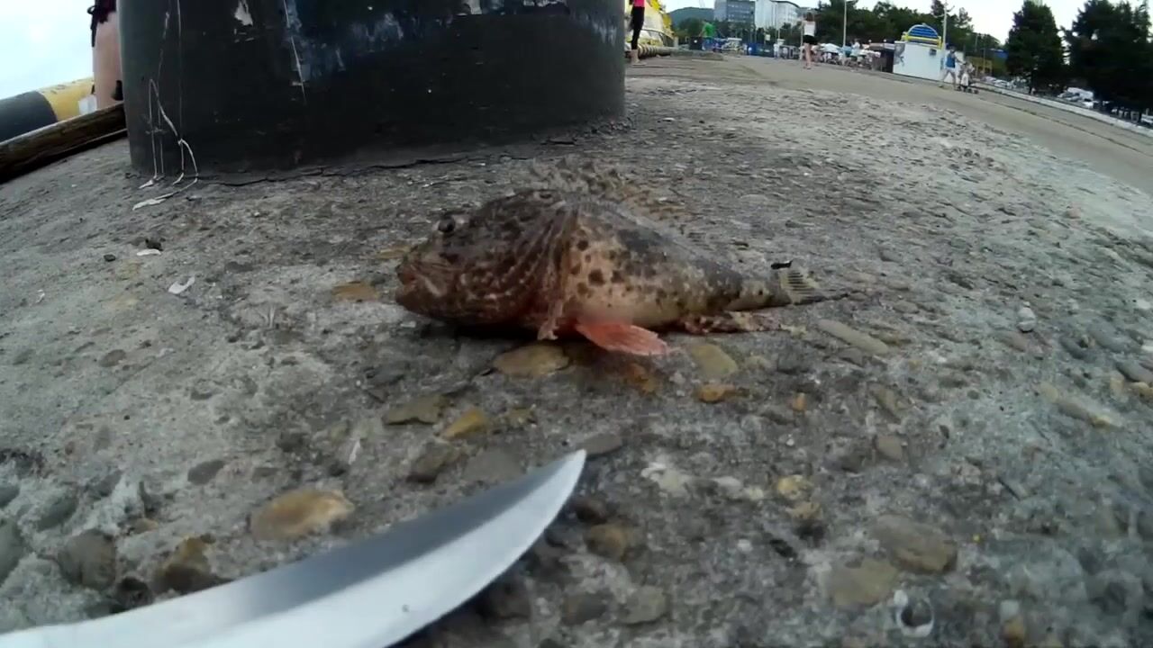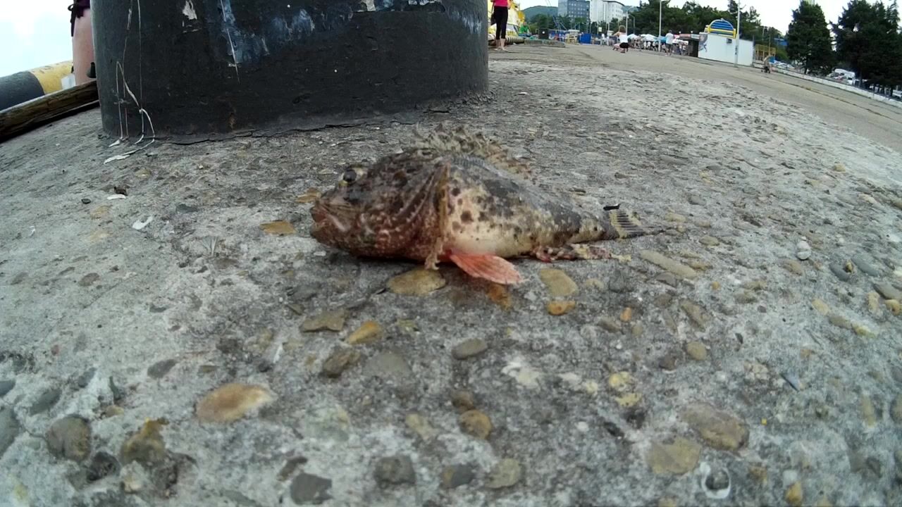 Оснастка с тремя крючками, насадка — черноморский рачок. Первая скорпена, ядовитая, выпускаю через бутылку. Дальше рыба «как лещ», возможно дорада — оставил. Несъедобная «собака» вернулась в воду. За три часа пять штук, местные советуют май как лучший месяц.