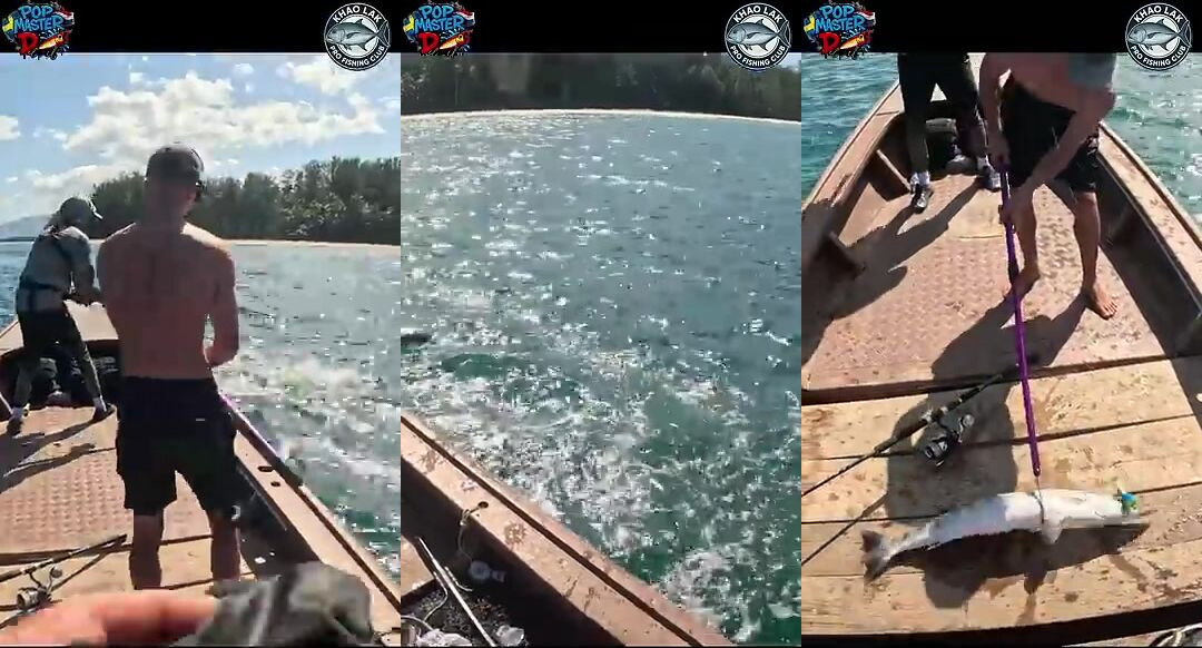 Крупная барракуда на поппер в Таиланде взрывной удар на поверхности