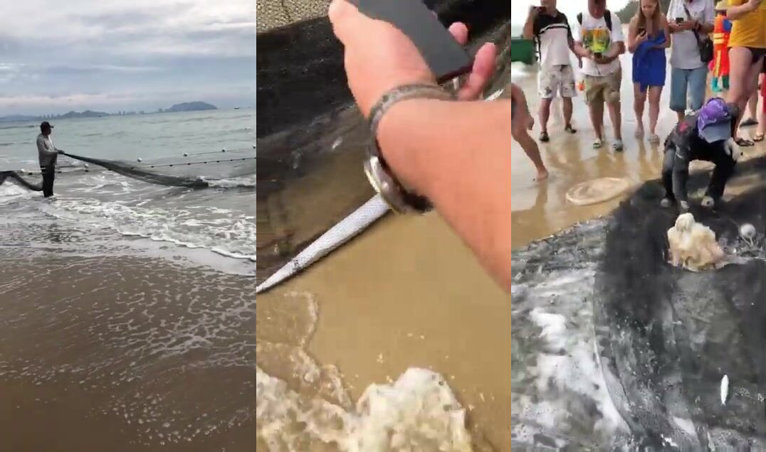 Морская рыбалка в Sanya Bay Hainan огромный улов почти в тысячу килограммов рыбы в одной сети
