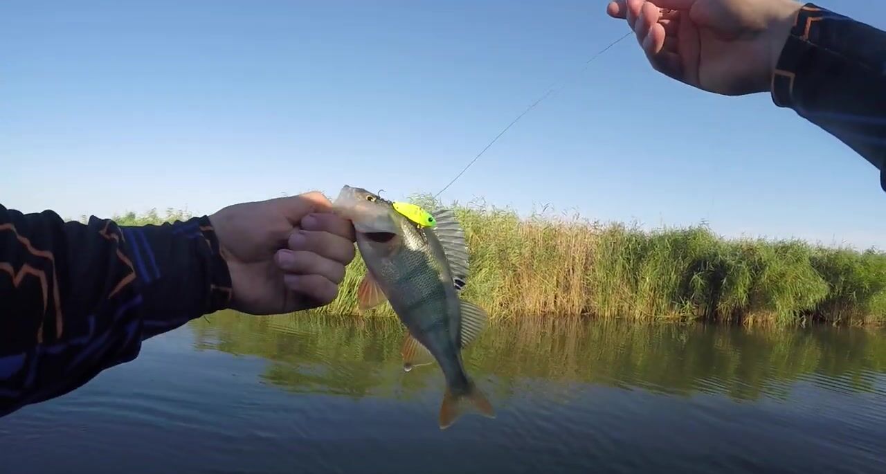 Кубань встречает всплеском жереха, хорошая поклёвка сошла. «Цикада» делает день: серия окуней, потом джиг — ещё пара. Комаров тучи, к вечеру жара гонит домой. Итог скромный, но приятный.