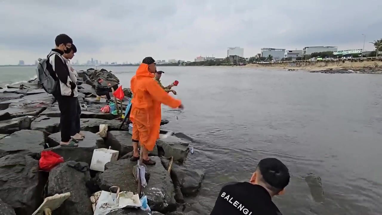 Дананг: массовая рыбалка на бульон из муки и пластиковую бутылку крупным планом