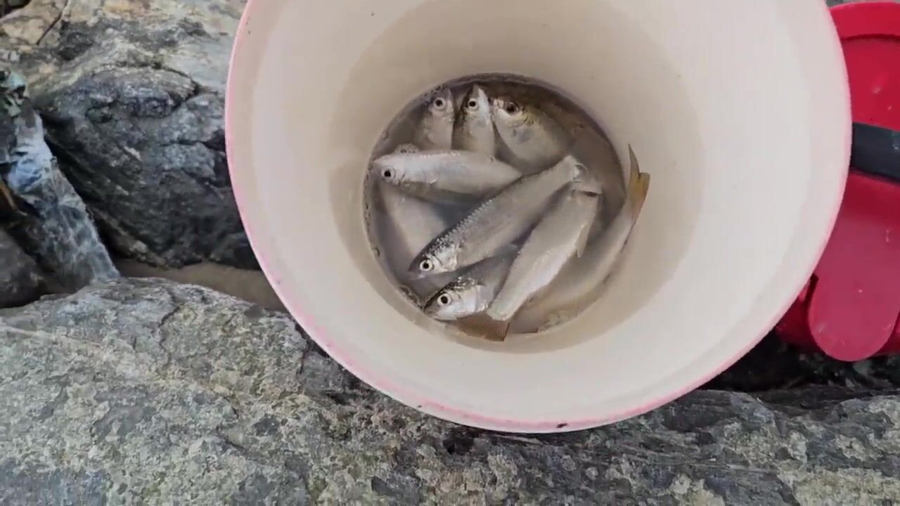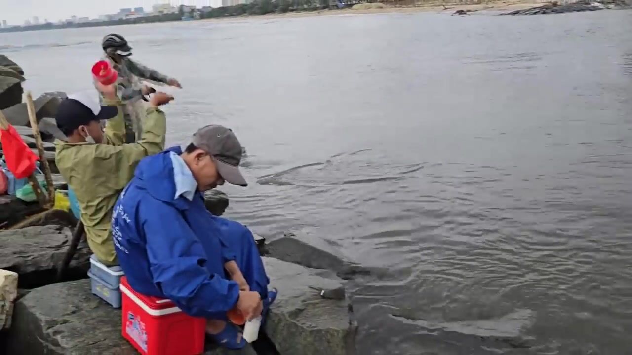 Phu Loc/Phú Lộc, кефаль у каменной косы в устье реки Da Nang/Дананг