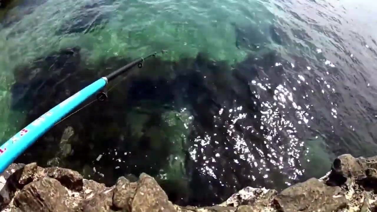 Спиннинг молчал, перехожу на креветку — её тут много, берём руками или покупаем, но хранится плохо. Собачка ухватила так, что до крови, зеленушка тоже отметилась. Вода прозрачная, видно, как берут. Рыбу отпускаю, столовая кормит, тащить некуда.