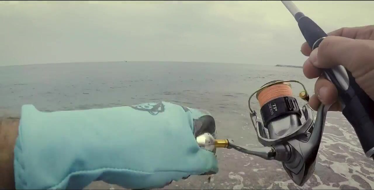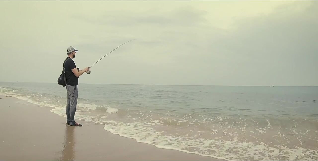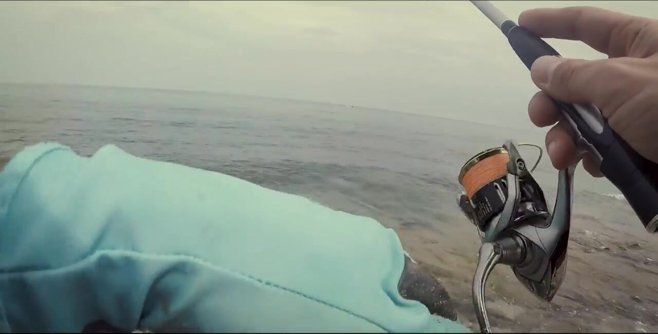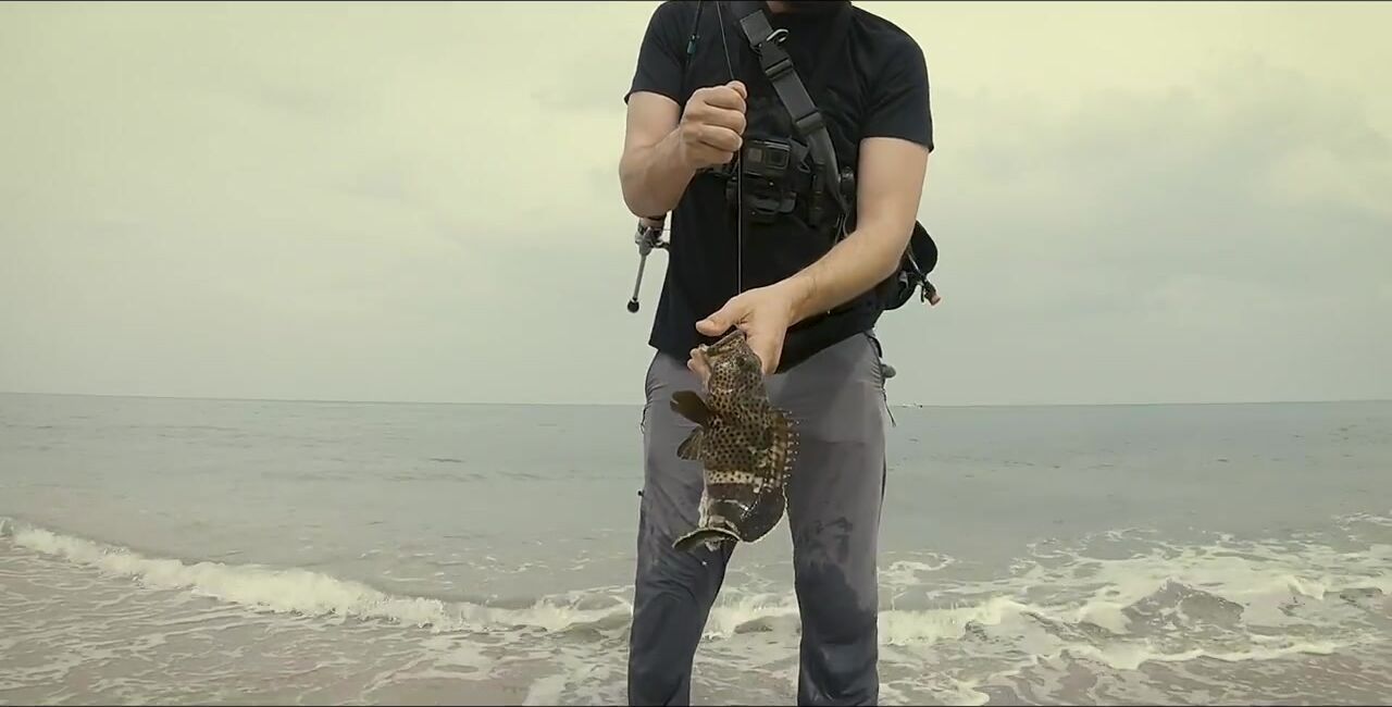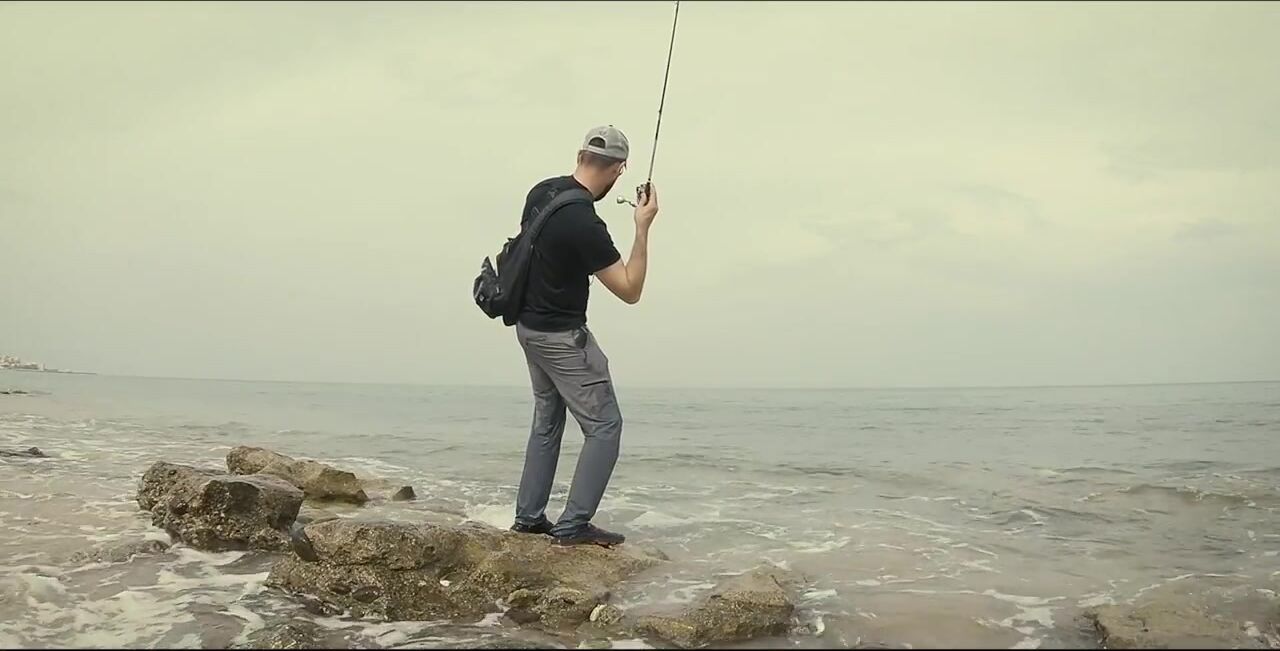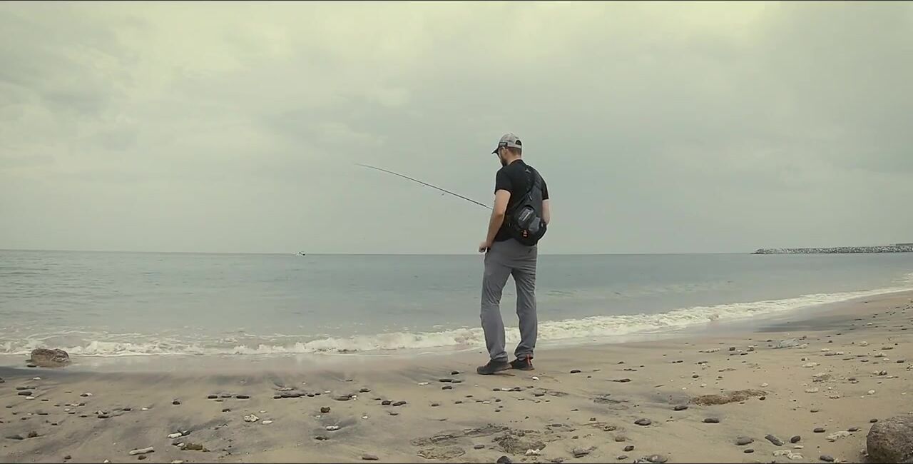 Один в Диббе, захожу на «семейный» пляж, начинаю мягким ритмом, восемь грамм. Первый морской окунь, не спешу — под камнями жизнь кипит. Между скалами подсвечиваю, вывожу, чтобы не застрял, перчатки выручают. Есть активный окунь крупнее, меняю место: там ветер и вспышки молний, ставлю «приюки пятьдесят с». Рыба прячется в камни, дождь сгущается, гроза на подходе. Про снаряжение и приманки обещал расписать отдельно, сворачиваюсь до удара грозы.