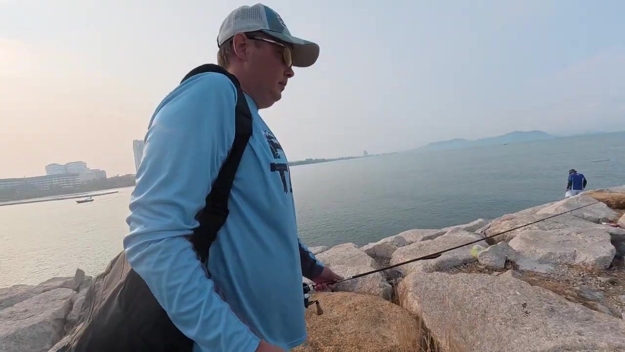 Морская рыбалка в Pattaya - твичинг с берега по прибойной волне